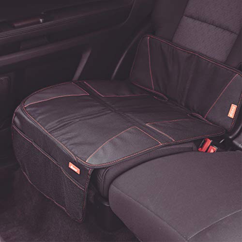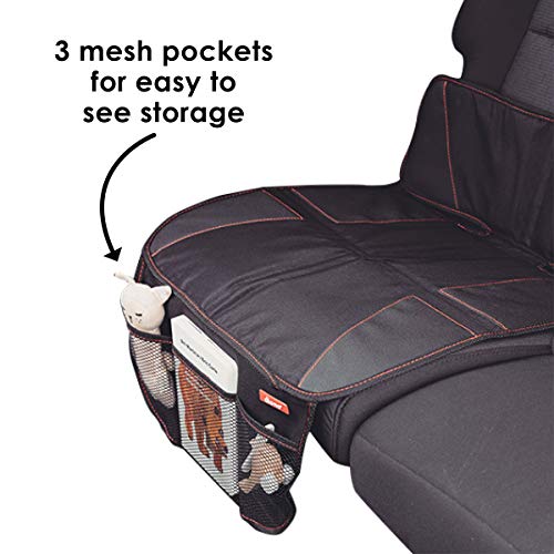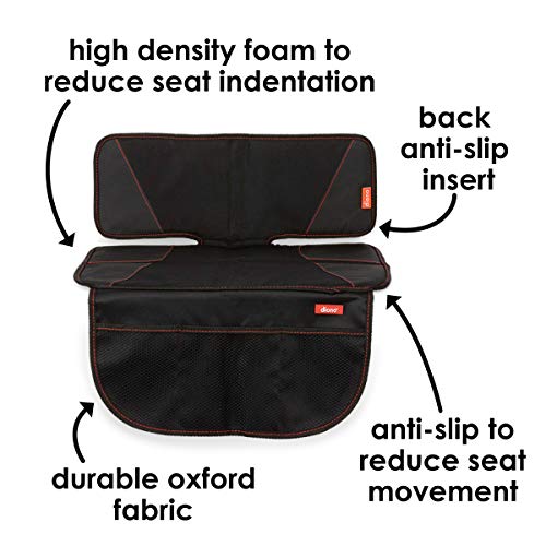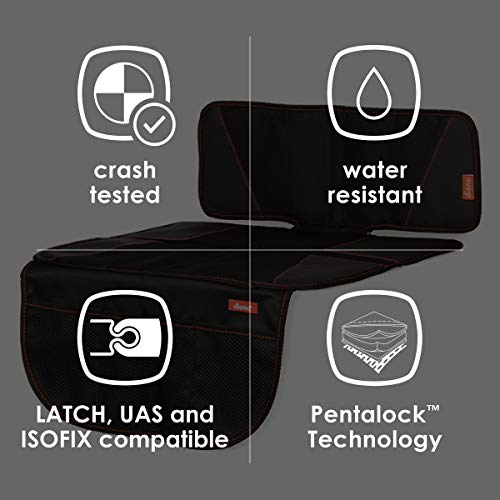 Diono Super Mat Car Seat Protector for Infant Car Seat, Booster Seat and Pets, Crash Tested, Thick Padding, Non Slip Backing, Durable, Water Resistant Protection, 3 Handy Mesh Storage Pockets, Black