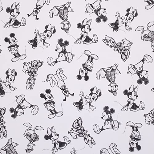 Disney Mickey Mouse - Charcoal, Black and White Mickey and Friends, Minnie Mouse, Donald Duck and Pluto Nursery Fitted Crib Sheet