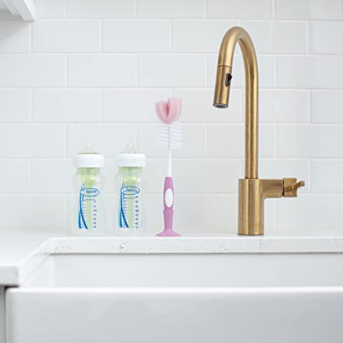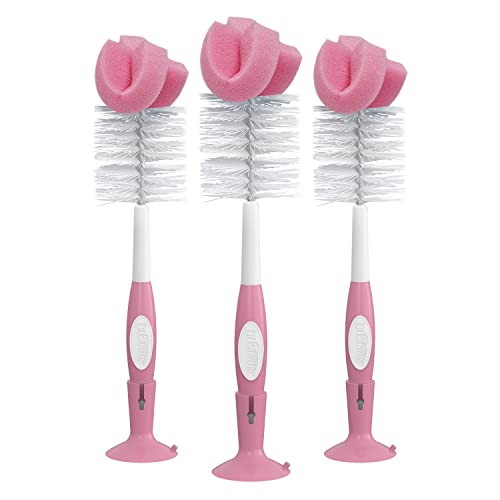 Dr. Brown's Reusable Sponge Baby Bottle Cleaning Brush Set with Suction Cup Stand, Scrubber and Nipple Cleaner, Pink, 3 Pack