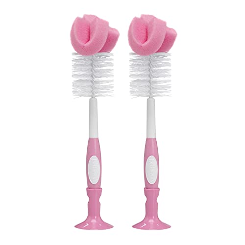 Dr. Brown's Reusable Sponge Baby Bottle Cleaning Brush with Suction Cup Stand, Scrubber and Nipple Cleaner, Pink 2-Pack