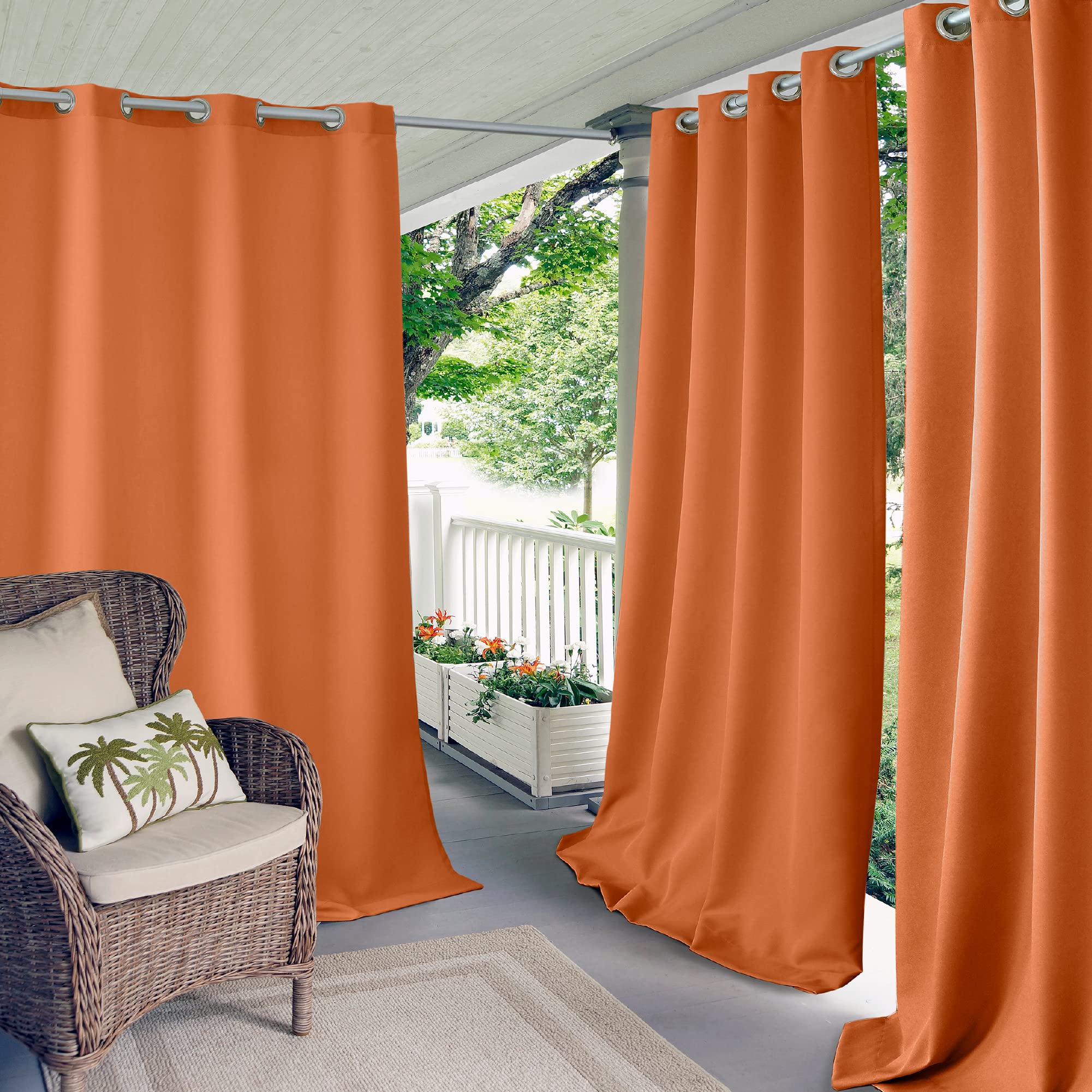 Elrene Home Fashions Solid Grommet Outdoor Window Curtain, 52"x108", Orange