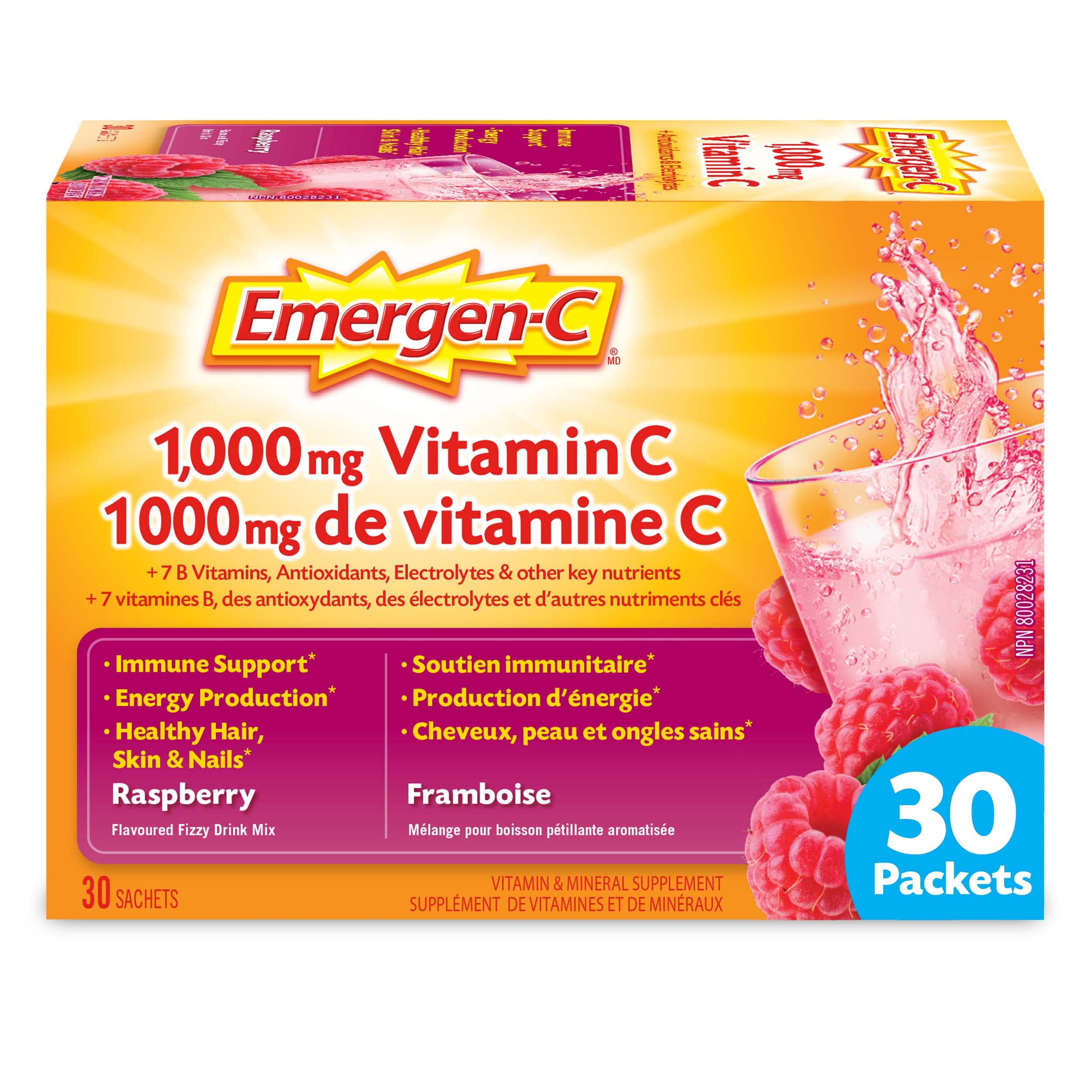 Emergen-C® Raspberry (30 Count), 1000mg Vitamin C / Electrolytes / B Vitamins Mineral Supplement