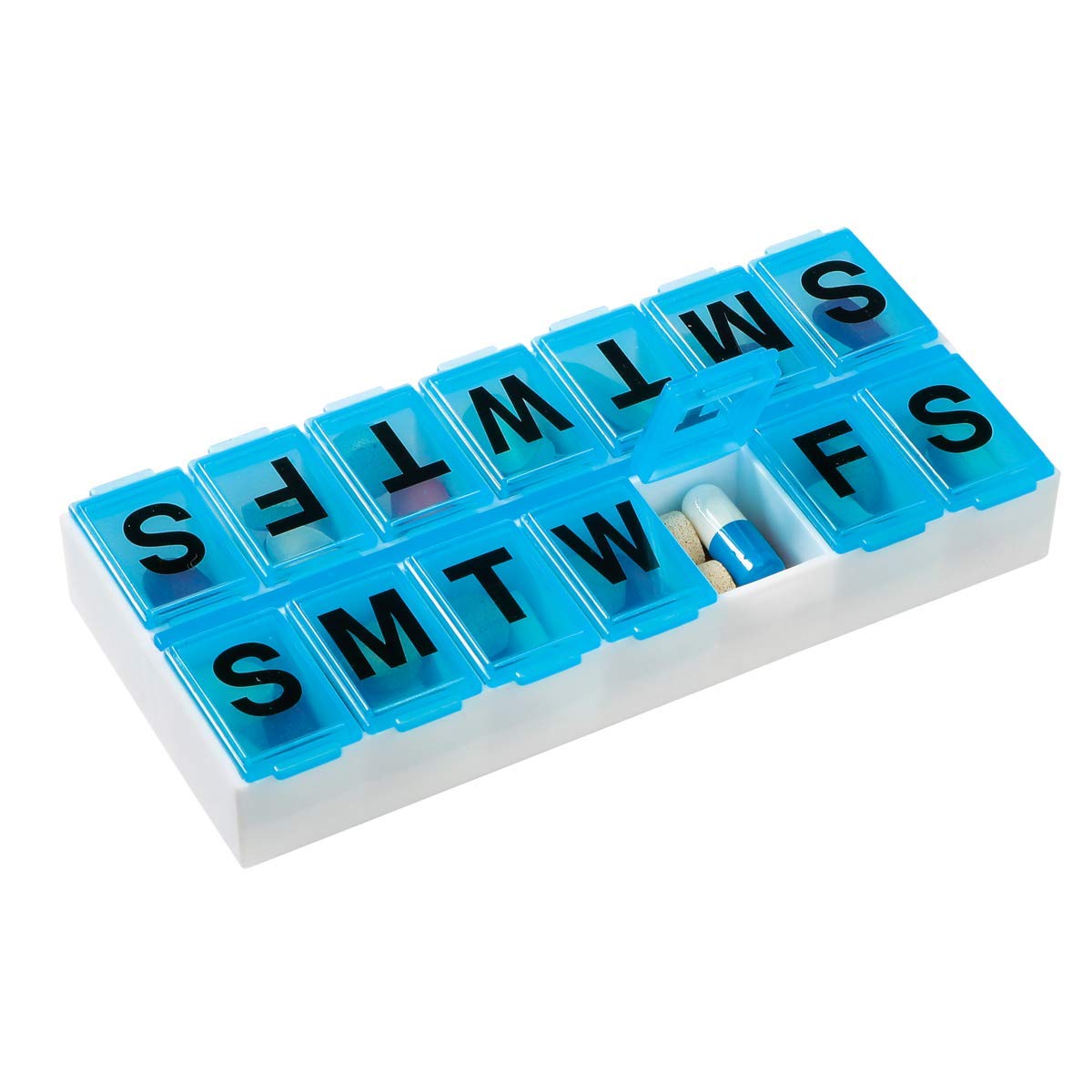 EZY DOSE Weekly (7-Day) Pill Organizer and Planner, Countoured Bottom for Easy Pill Removal, Blue, 1 Count (Pack of 1), (67377)