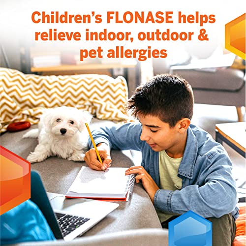 Children’s Flonase Allergy Relief Nasal Spray relieves nasal congestion plus runny nose, sneezing, itchy nose, and itchy, watery eyes. This non-drowsy allergy medicine delivers powerful multi-symptom indoor and outdoor relief during allergy season and year-round. Children’s Flonase nasal spray provides 24-hour all-in-one relief of allergy symptoms caused by allergens including pollen, mold, dust, and pet dander, making it great for back-to-school and seasonal allergy relief. Children’s Flonase uses fluticasone propionate nasal spray, the number 1 pediatrician recommended allergy medication (1). The non-drowsy allergy medicine for kids ages 4 to 11 is specially formulated for allergy relief to keep kids energized and focused throughout the day. To use: once daily, place the nozzle tip inside the child's nose and spray gently in each nostril. (1) Based on IMS Health Monthly TRx Allergy Market for the 12-month period ending January 2022
