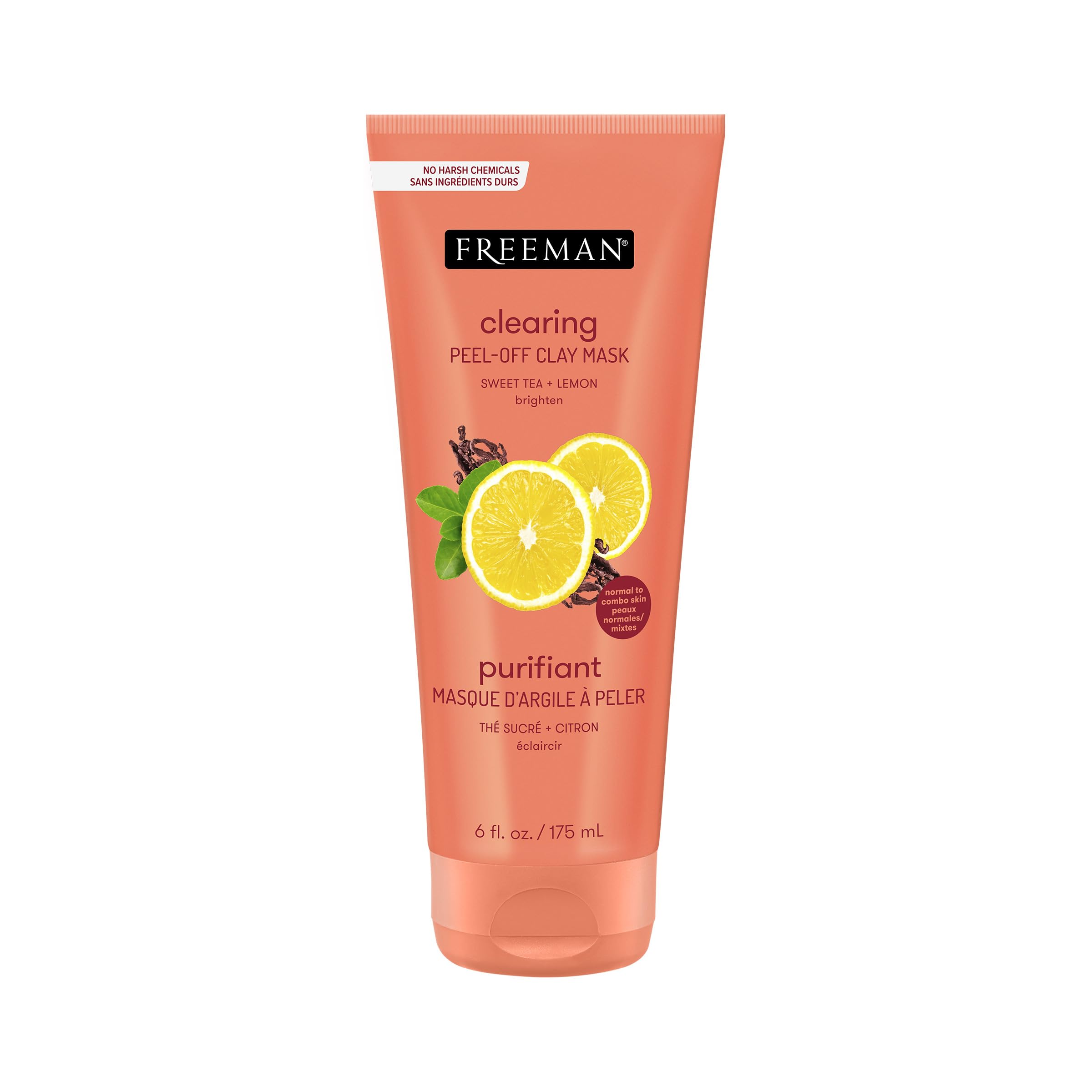 Freeman Sweet Tea & Lemon Peel-Off Clay Facial Mask, Skin Clearing, 1 Count, 6 fl oz/175 mL Tube