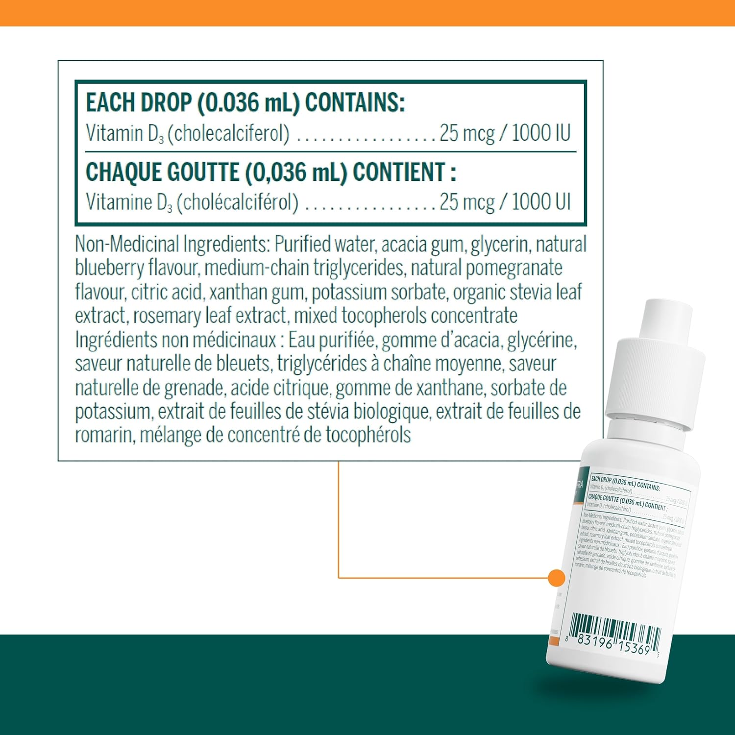 Genestra Brands D-Mulsion 1000 IU - Liquid Vitamin D3 - For Healthy Bones & Teeth - Immune Function Support - Non-GMO, Gluten Free & Dairy Free - 30 mL - Natural Berry Flavour