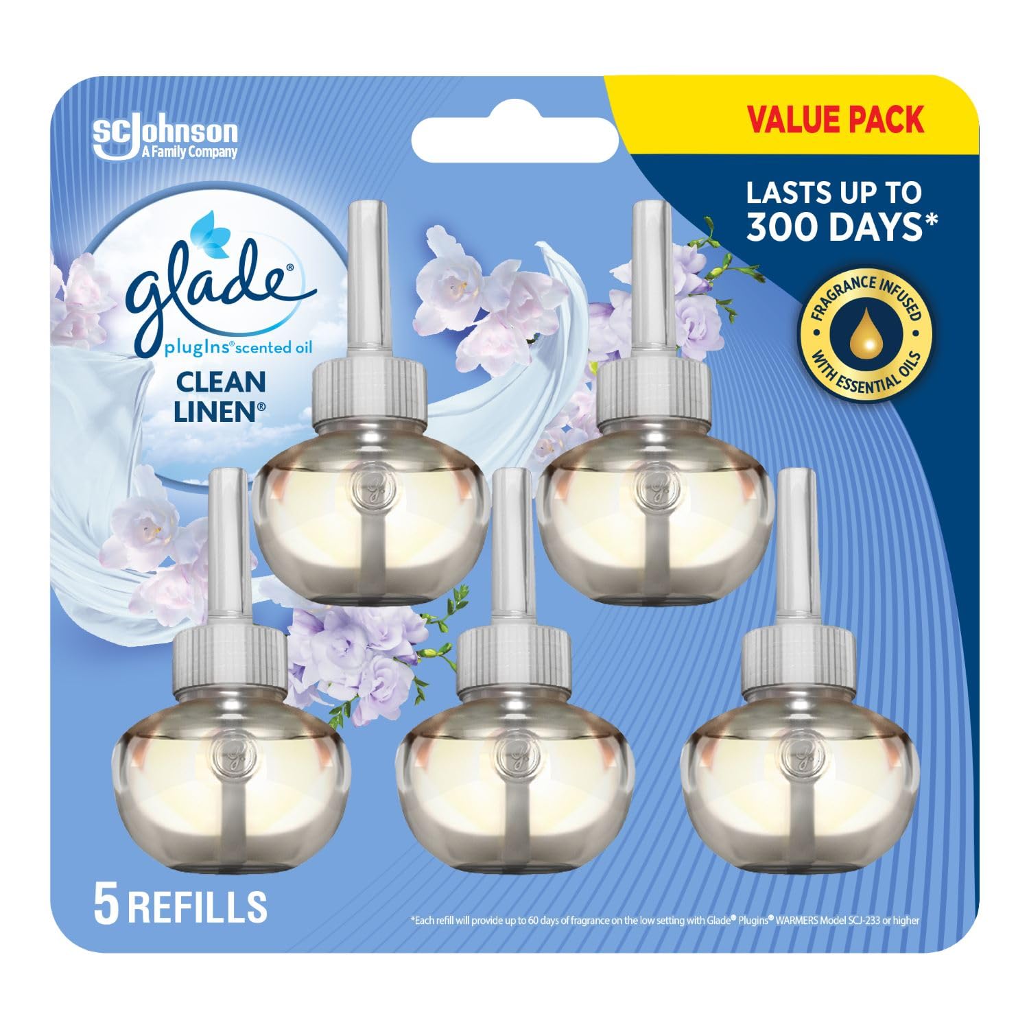 Glade PlugIns Air Freshener Oil Refill, Scented and Essential Oils for Home and Bathroom, Clean Linen, 5 Refills