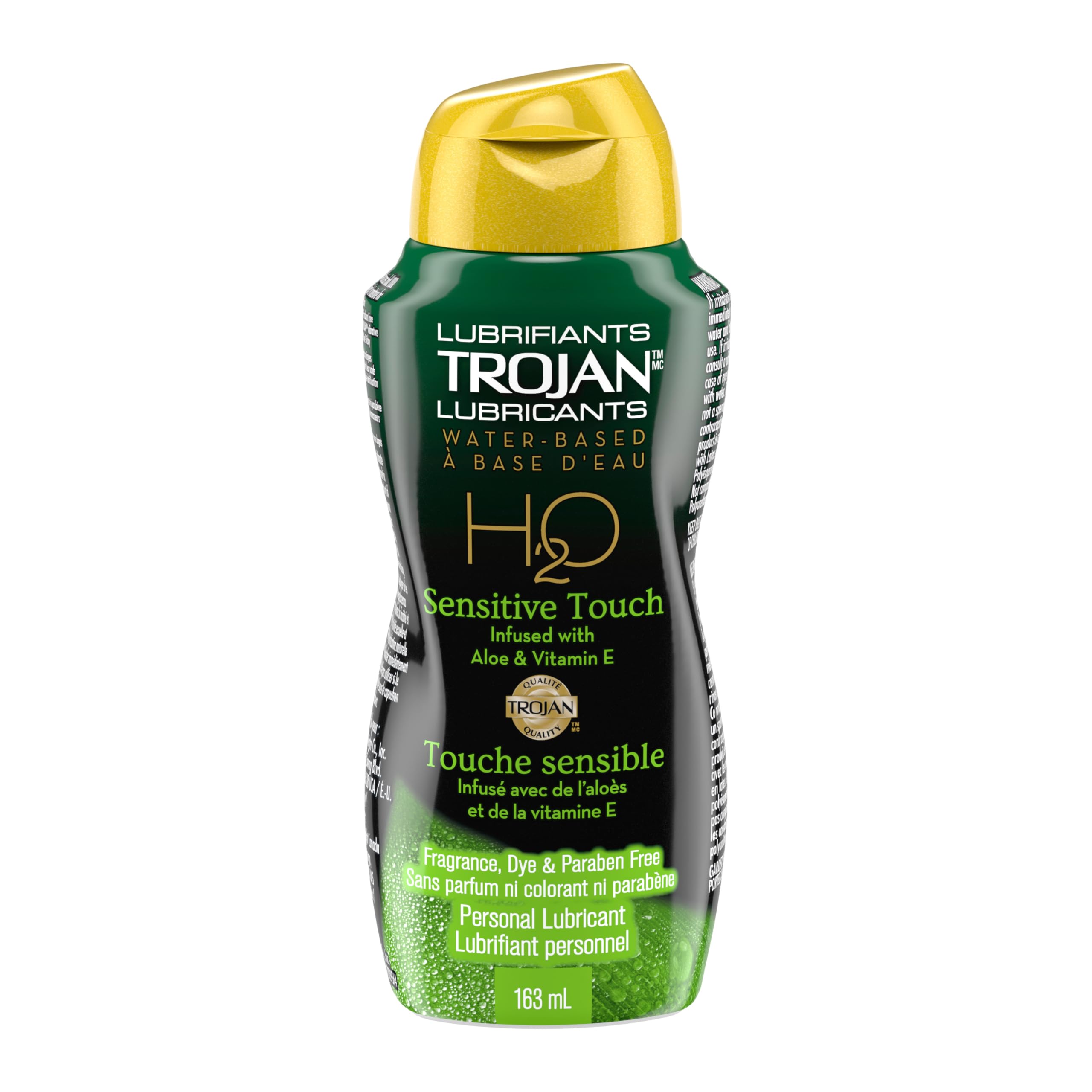 TROJAN H20 Sensitive Touch Water-Based Personal Lube, Aloe & Vitamin E Infused Lubricant, Hyaluronic Moisturizers, Fragrance, Dye & Paraben Free, 163-ml