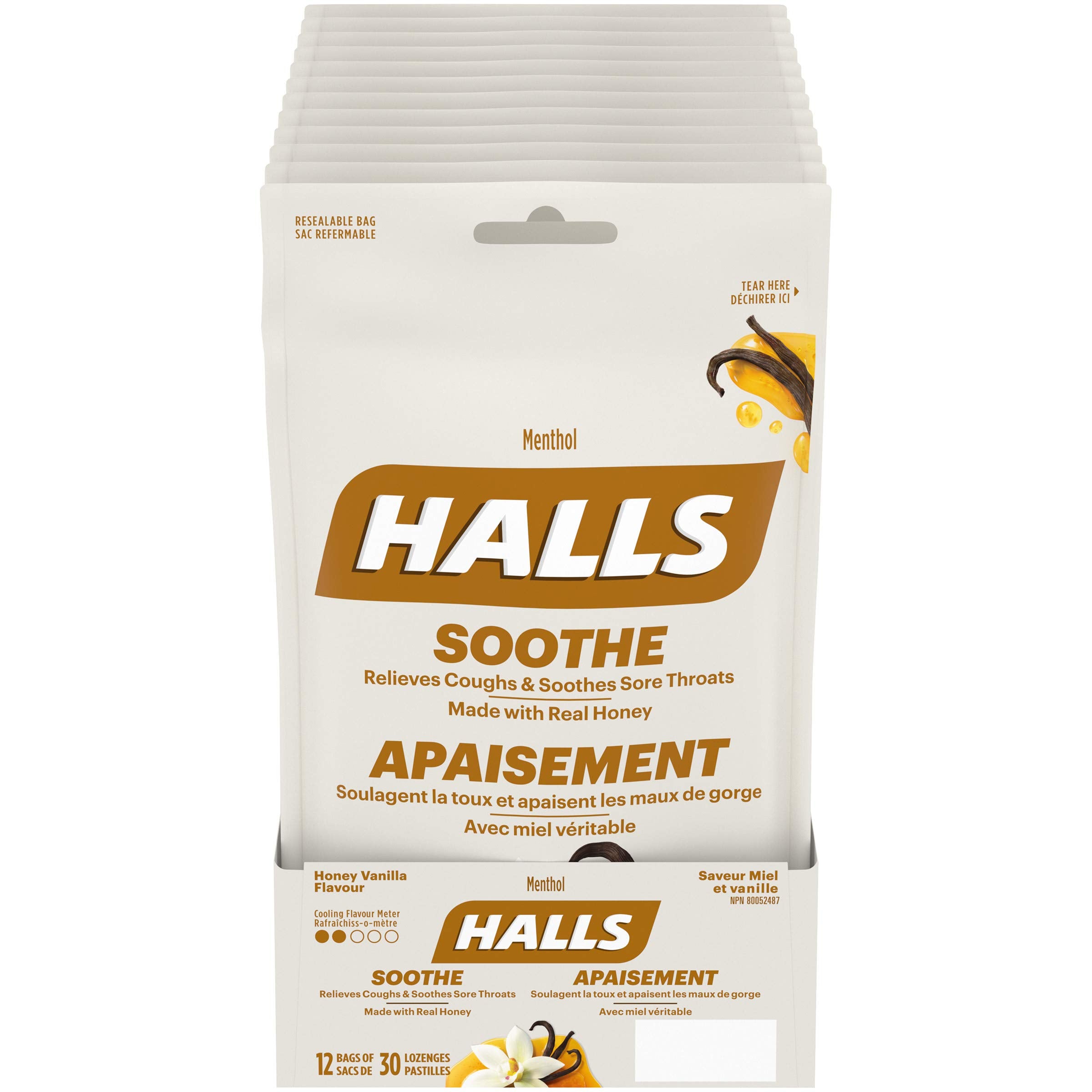 HALLS Menthol Honey Vanilla 30 Count Bag, Pack of 12