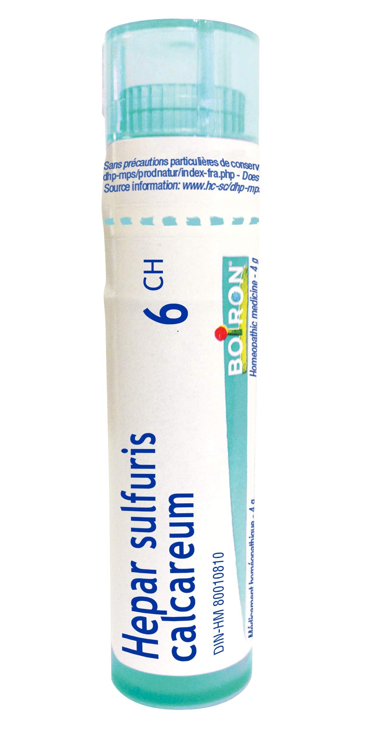 Boiron Hepar sulfuris calcareum 6ch,Homeopathic medicine. Each tube contains 4 g (approximately 80 pellets)