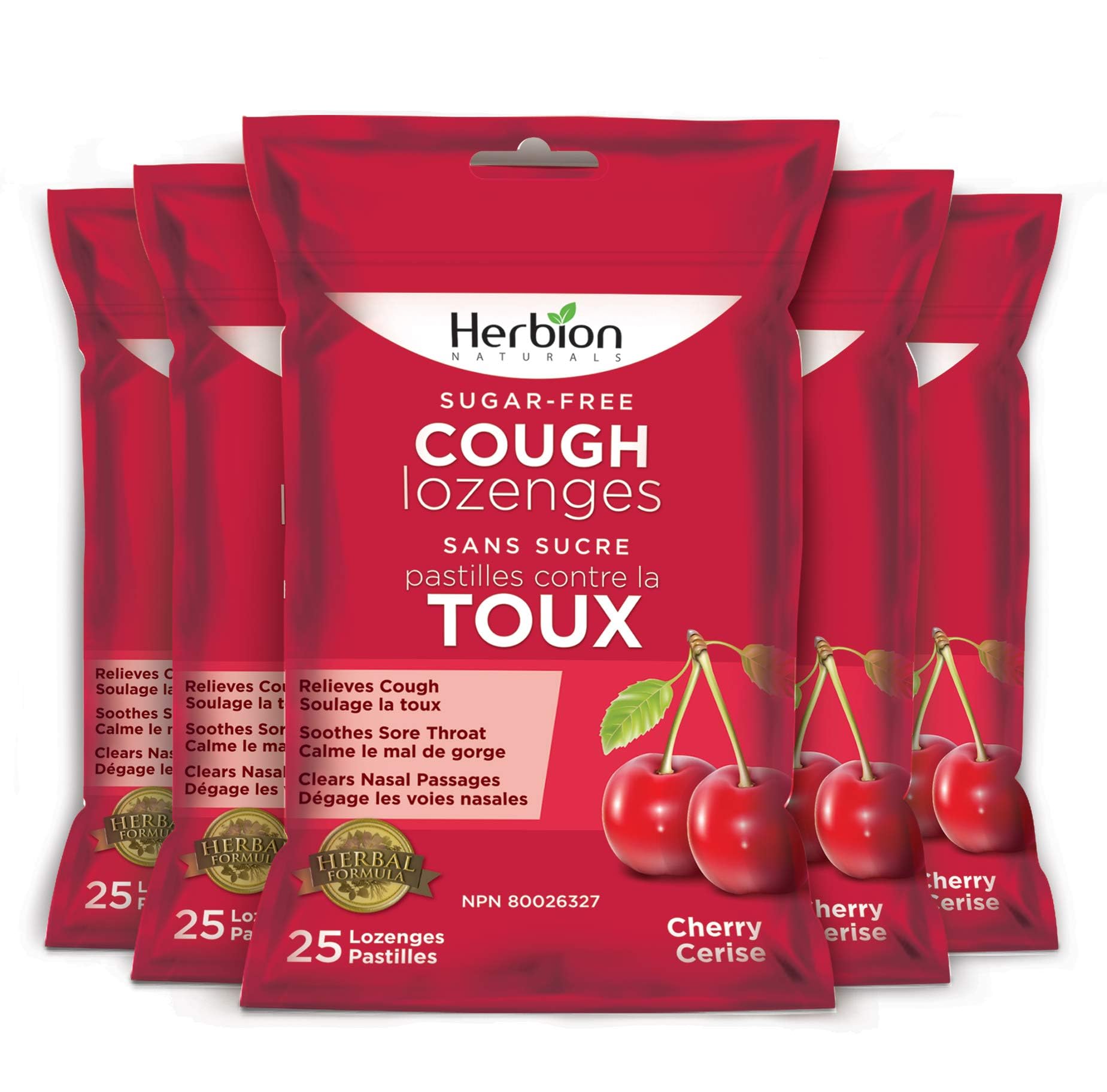 Herbion Naturals Sugar Free Cough Lozenges Cherry, 25 Lozenges, Relieves Cough & Congestion, Soothes Sore Throat, For Adults & Children 12+, Pack of 5