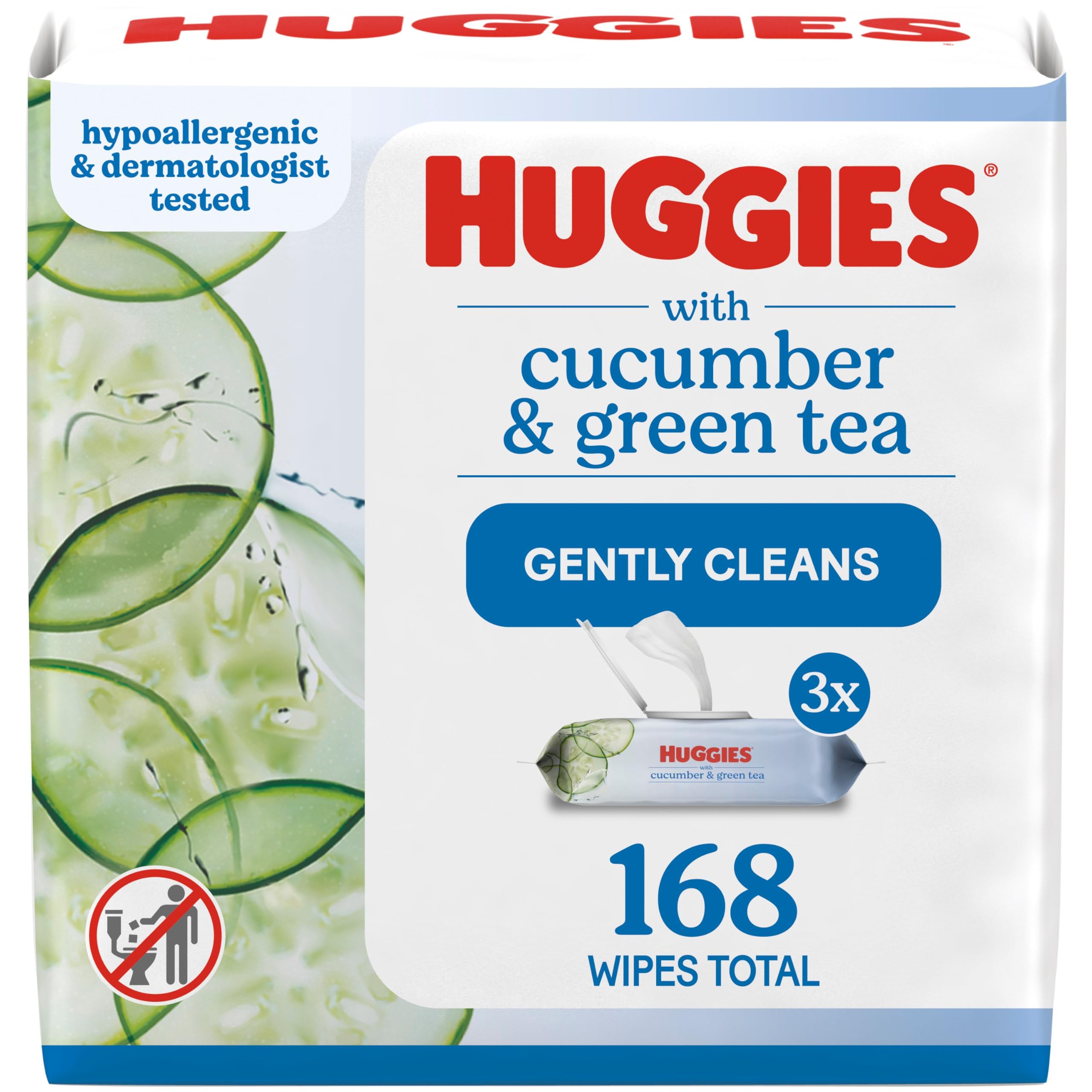HUGGIES Refreshing Clean Scented Baby Wipes, Hypoallergenic, 3 Disposable Flip-top Packs (168 Total Wipes)
