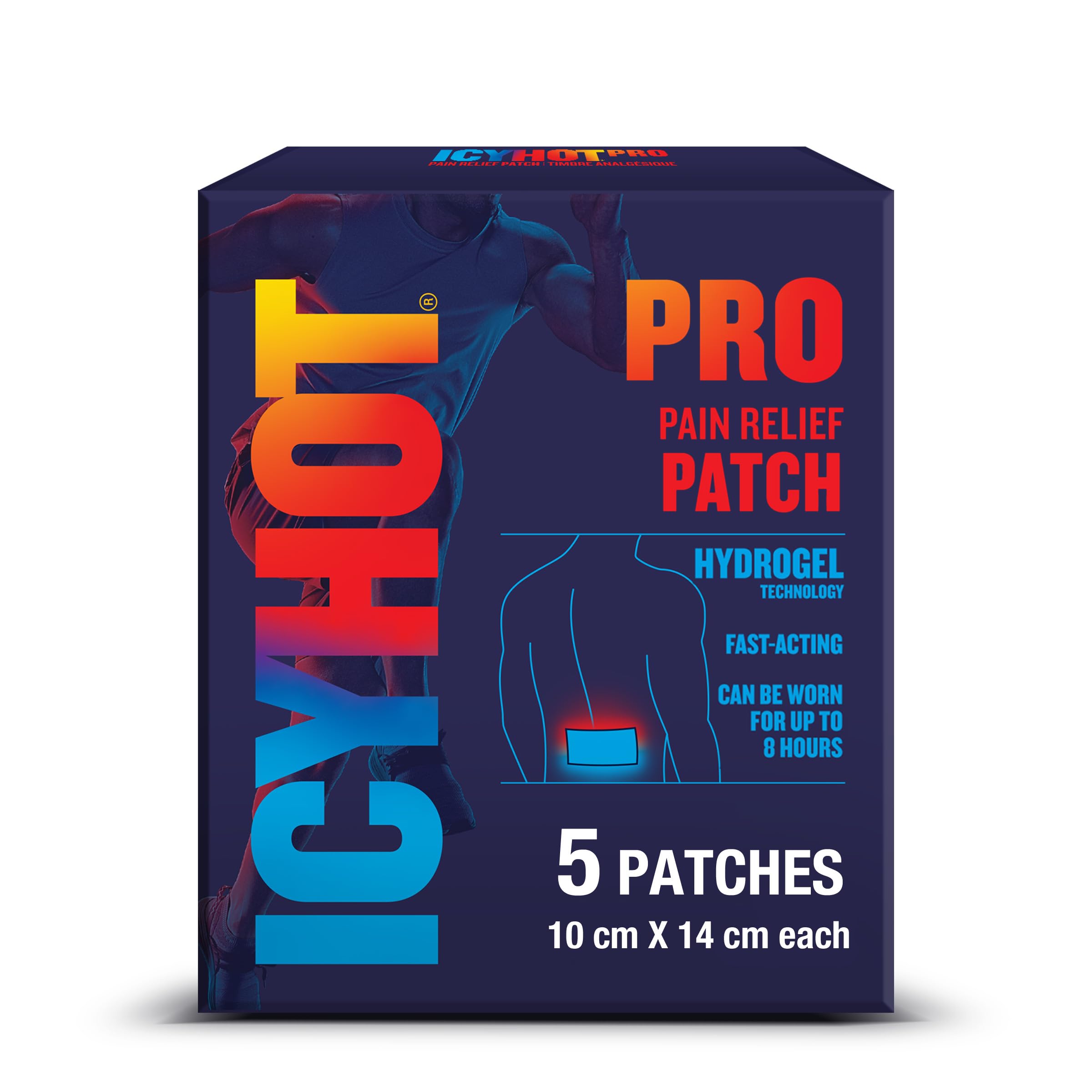 Icy Hot Pro Pain Relief Patch, Fast-Acting Patch for Muscle Ache and Joint Pain, Simple Backache, Strains and Sprains, Camphor 3%, Menthol 5% and Advanced Hydrogel Technology, 5 Count