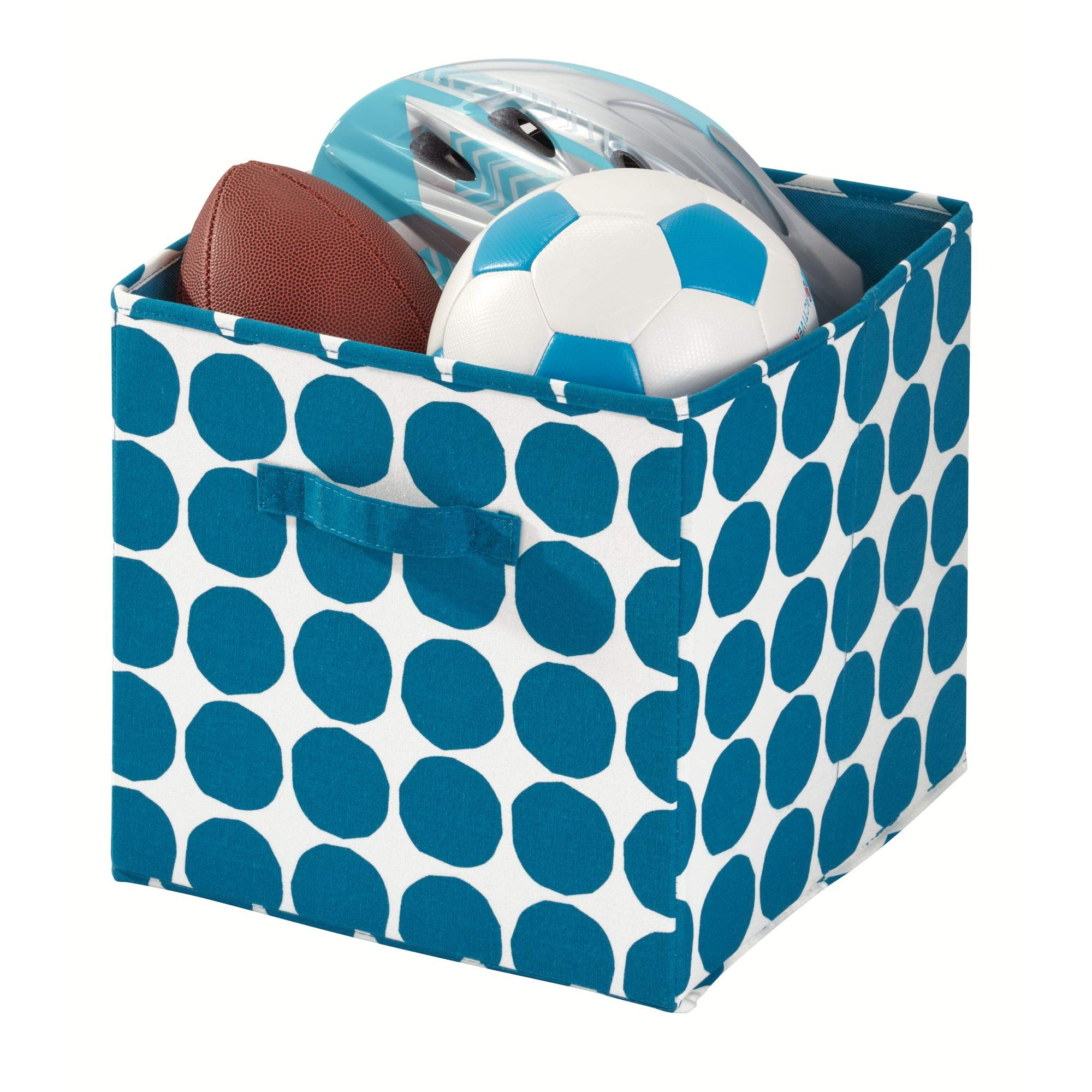 iDesign Dot Fabric Storage Cube Bin, Medium Basket Container with Dual Side Handles for Closet, Bedroom, Toys, Nursery - Blue