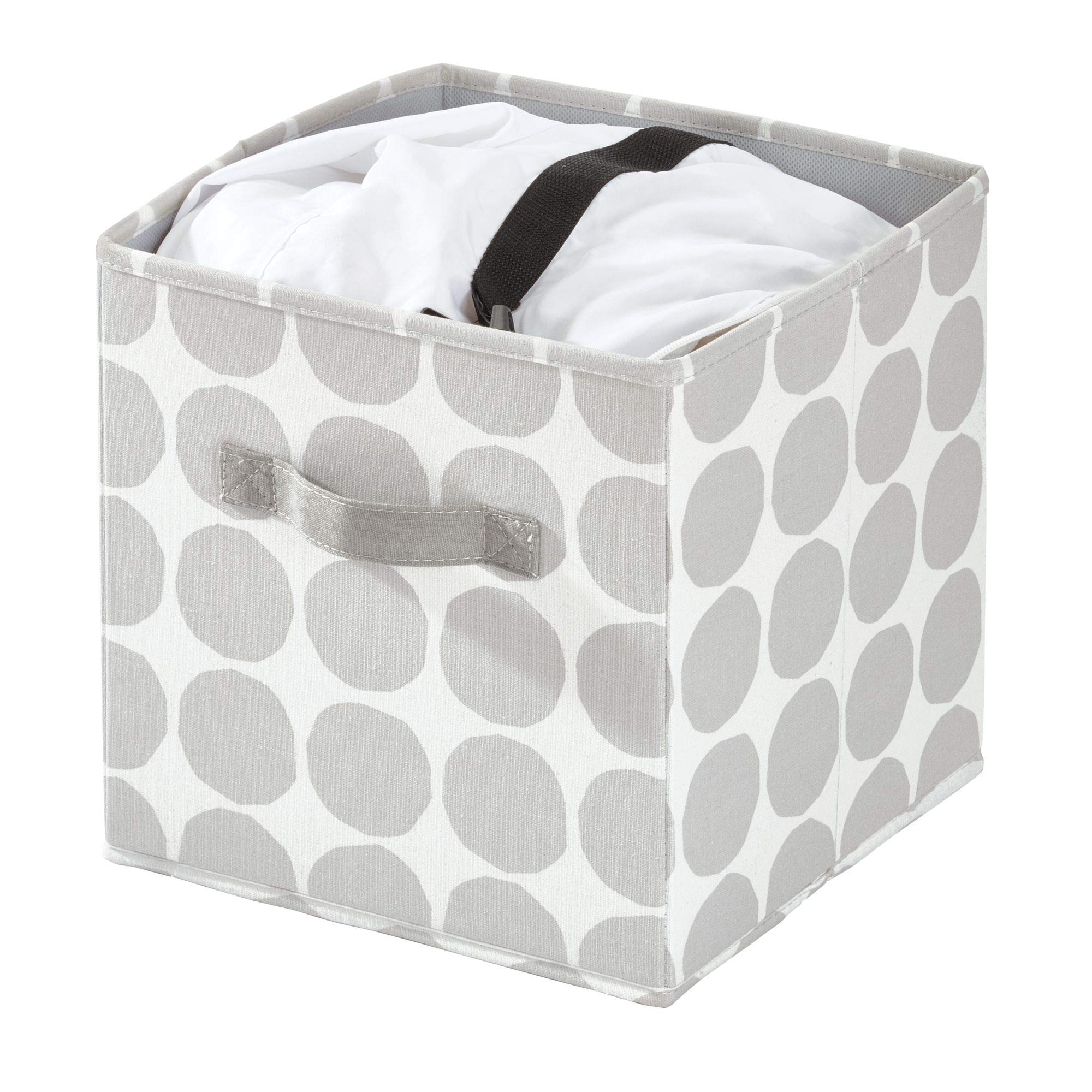 iDesign Dot Fabric Storage Cube Bin, Small Basket Container with Dual Side Handles for Closet, Bedroom, Toys, Nursery - Gray
