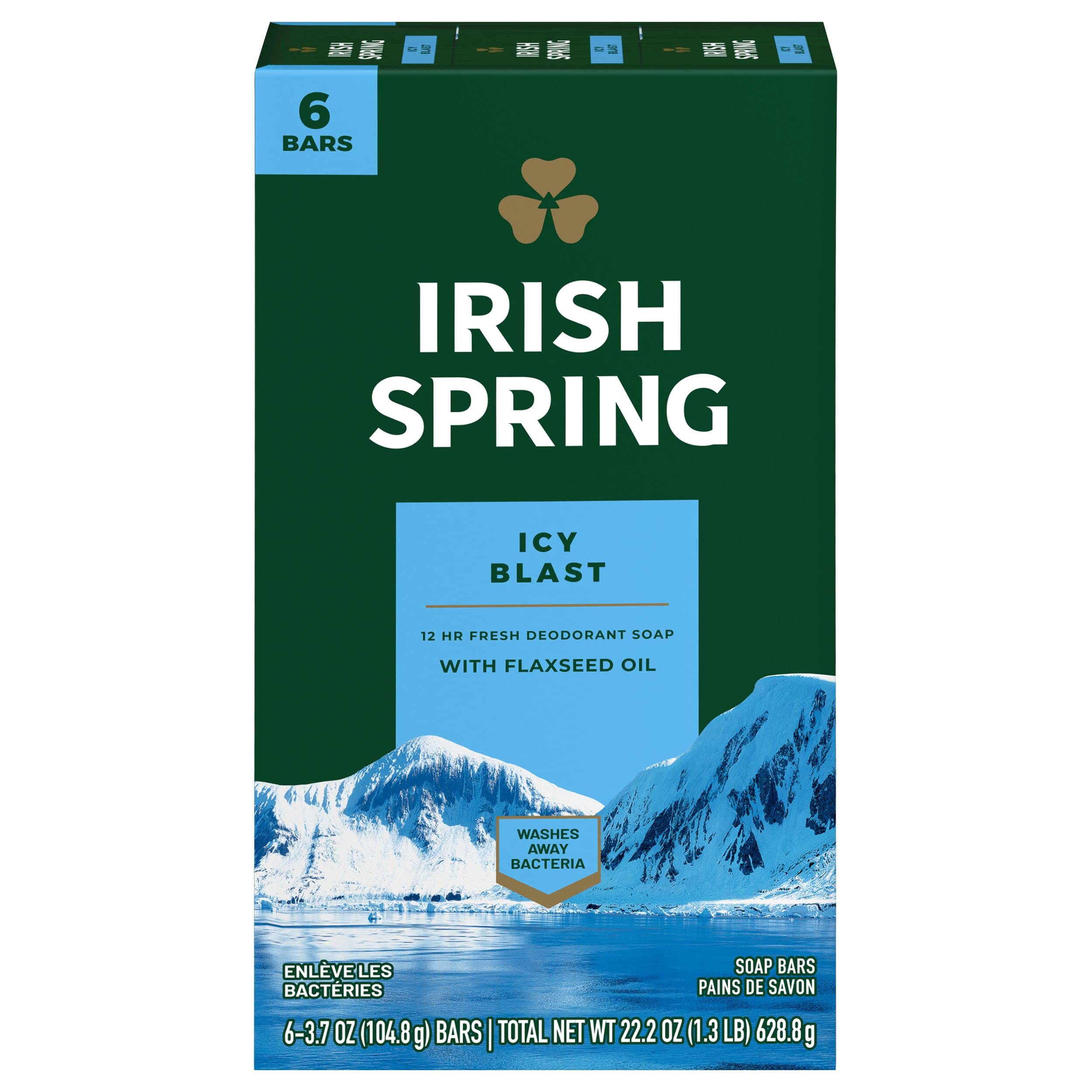 Irish Spring Icy Blast Deodorant Bar Soap for Men, 6 Pack