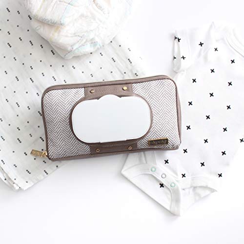 Itzy Ritzy Travel Wipes Case – Portable, On-The-Go Baby Wipes Holder Including Removable Clips For Car Visor Or Seat Back, Designed to Hold Packs of Up to 64 Wipes, Vanilla Latte