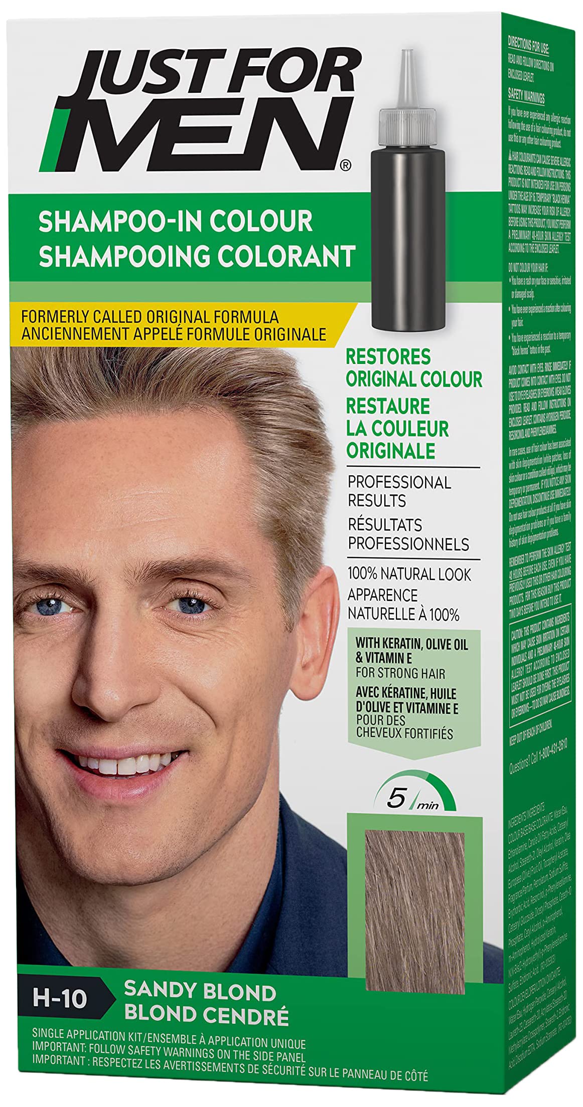 Just For Men Shampoo-In Color, Hair Color for Men with Keratin and Vitamin E for Stronger Hair - Sandy Blond, H-10, Pack of 1