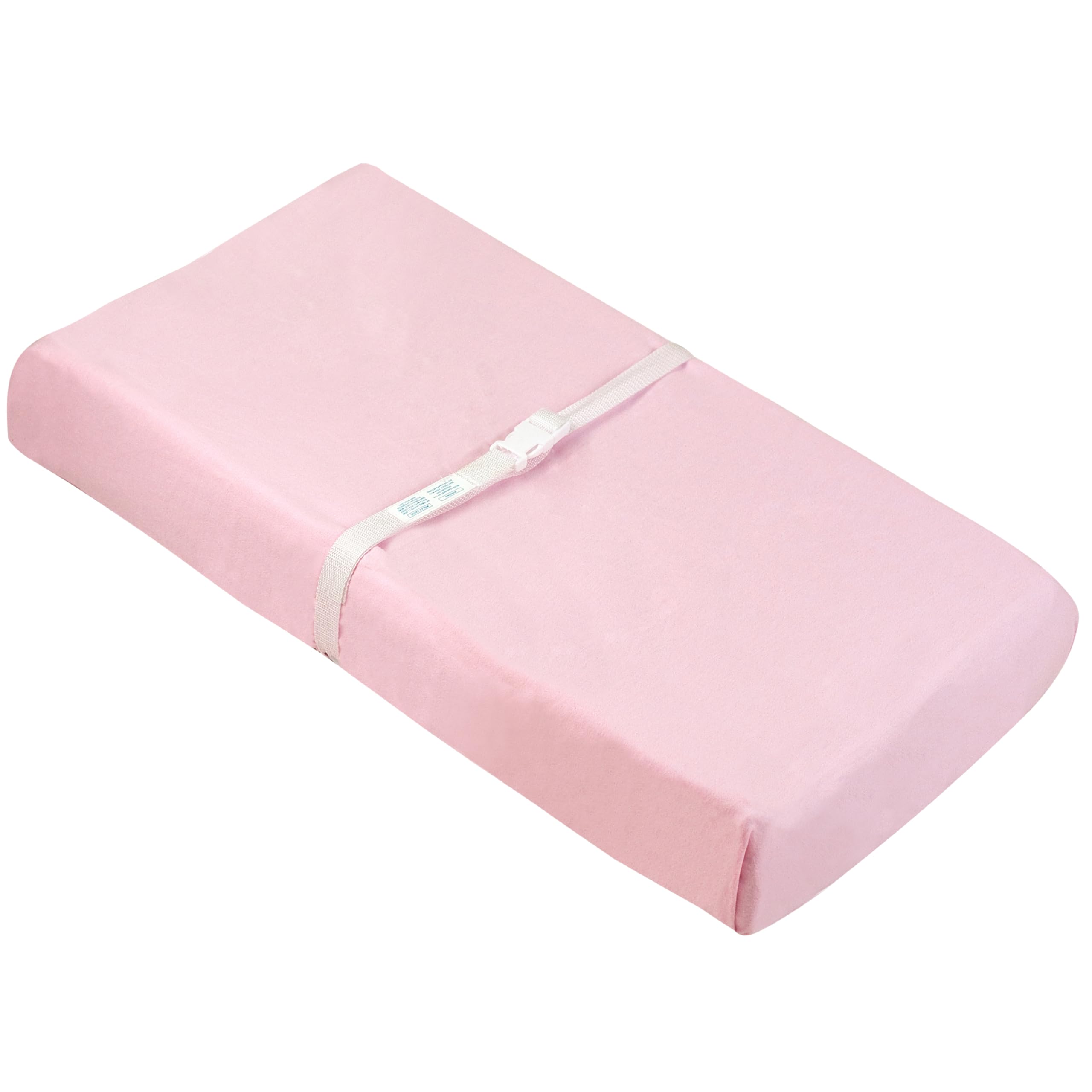 Kushies Baby 100% Breathable Cotton Flannel Contoured Changing Pad Cover with Slits for Safety Straps, 17" x 33" Pink Solid