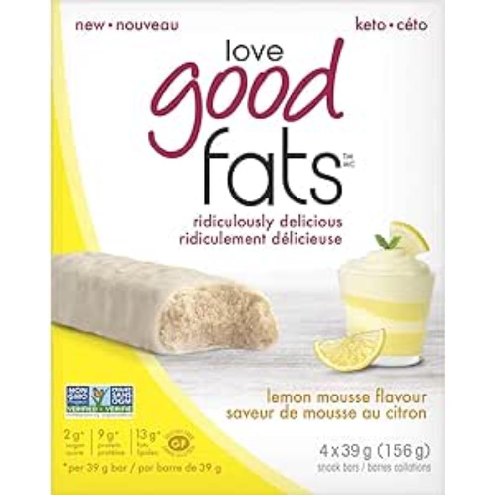 Love Good Fats Bars – Lemon Mousse – Keto-Friendly Protein Bar with Natural Ingredients – Low Sugar, Low Carb, Non GMO, Gluten & Soy Free Snacks for Ketogenic Diets – (4 Count)