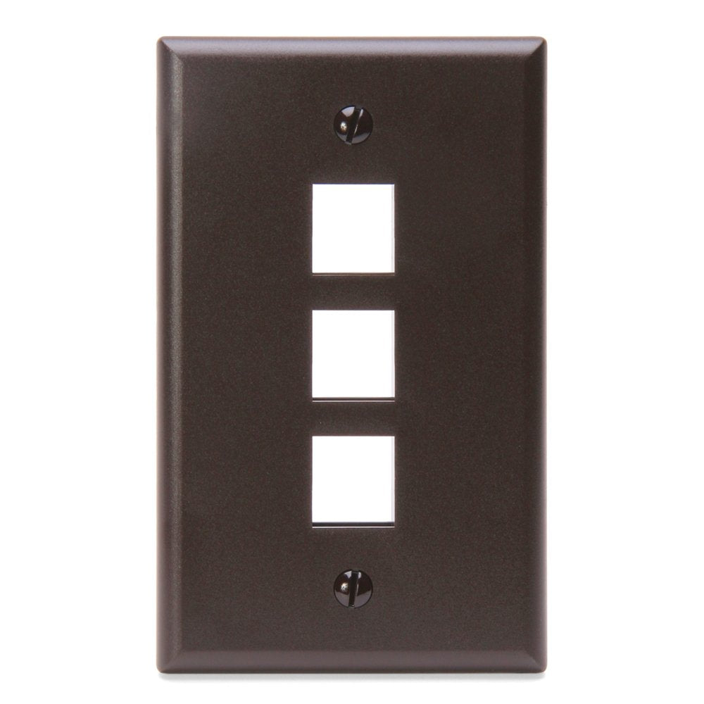Leviton 41080-3BP QuickPort Wallplate, Single Gang, 3-Port, Brown