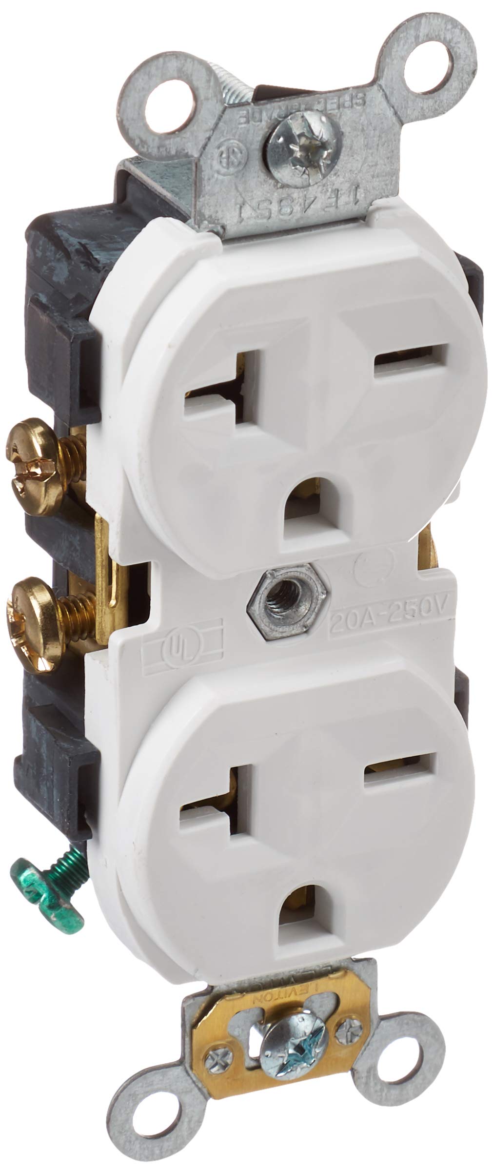 Leviton Duplex Receptacle 20 Amp, 250-Volt, Straight Blade, Commercial Grade, Self Grounding, 5822-00W, White