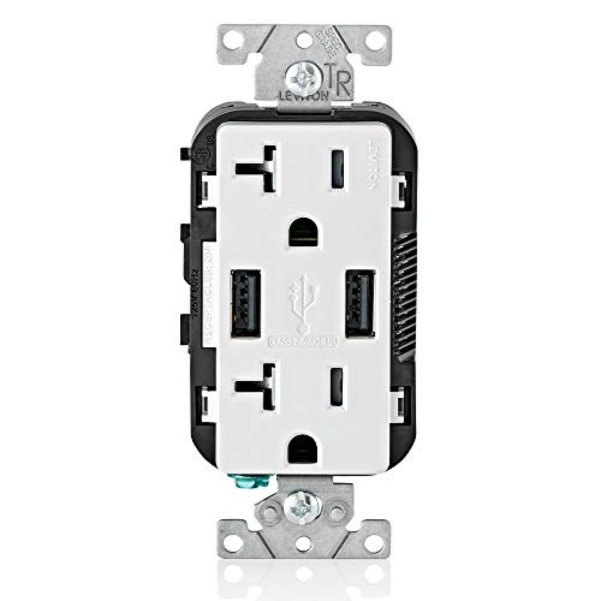 Leviton T5832-W USB Charger/Tamper-Resistant Duplex Receptacle, 20-Amp, White