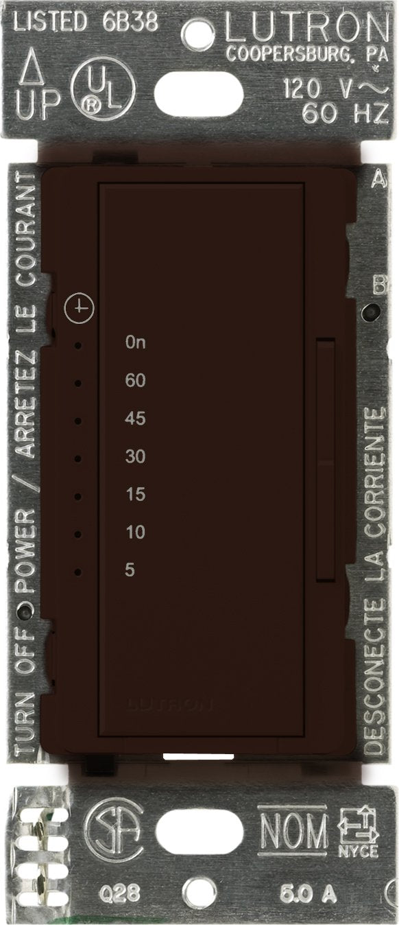 Lutron Maestro Countdown Timer Switch for Fans and Lights, 3A/150-Watt LED Bulbs, Single-Pole/Multi-Location, MA-T51MN-BR, Brown