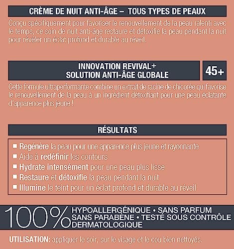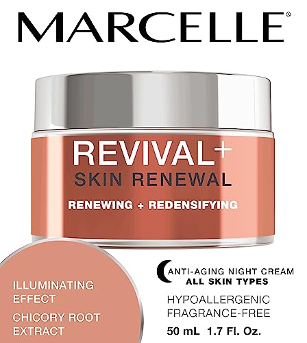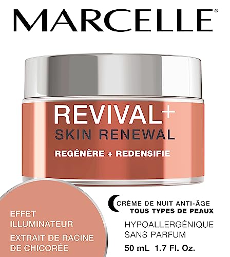 Marcelle Revival+ Skin Renewal Anti-Aging Night Cream, All Skin Types, 45+, Redensifying, Moisturizing & Smoothing, Cruelty-Free, Hypoallergenic, Paraben-Free, Fragrance-Free, Oil-Free, 50 mL