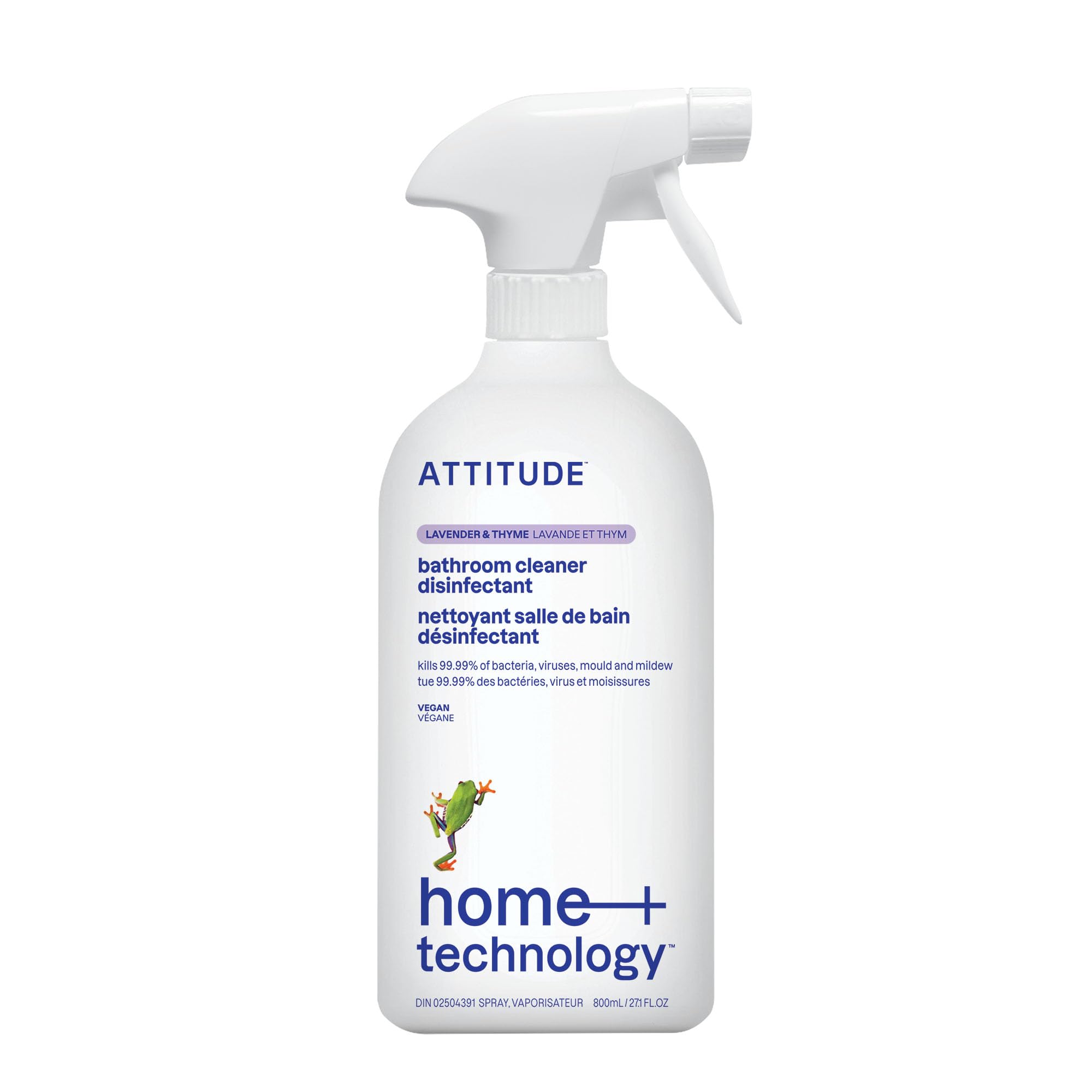 ATTITUDE Bathroom Disinfectant Cleaner, Kills 99.99% of Germs & Viruses, For Shower, Tub, Toilet & Tile, Vegan & Plant-Based, Made in Canada, Lavender & Thyme Scent, 800 mL