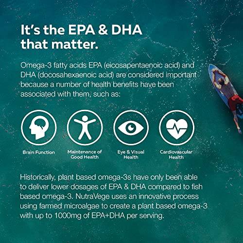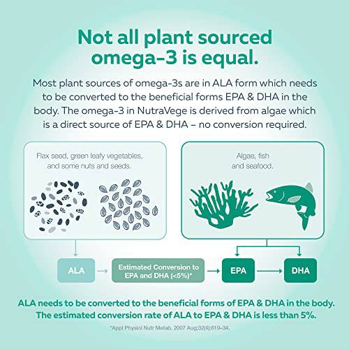 Nature's Way NutraVege Plant-Based Omega-3 VeggieGels – Vegan-Friendly Omega-3 Supplement with 300mg DHA + 150mg EPA – Fresh Mint Flavour – Support Heart, Eyes and Brain Function in Adults, 75 Softgels Value Size