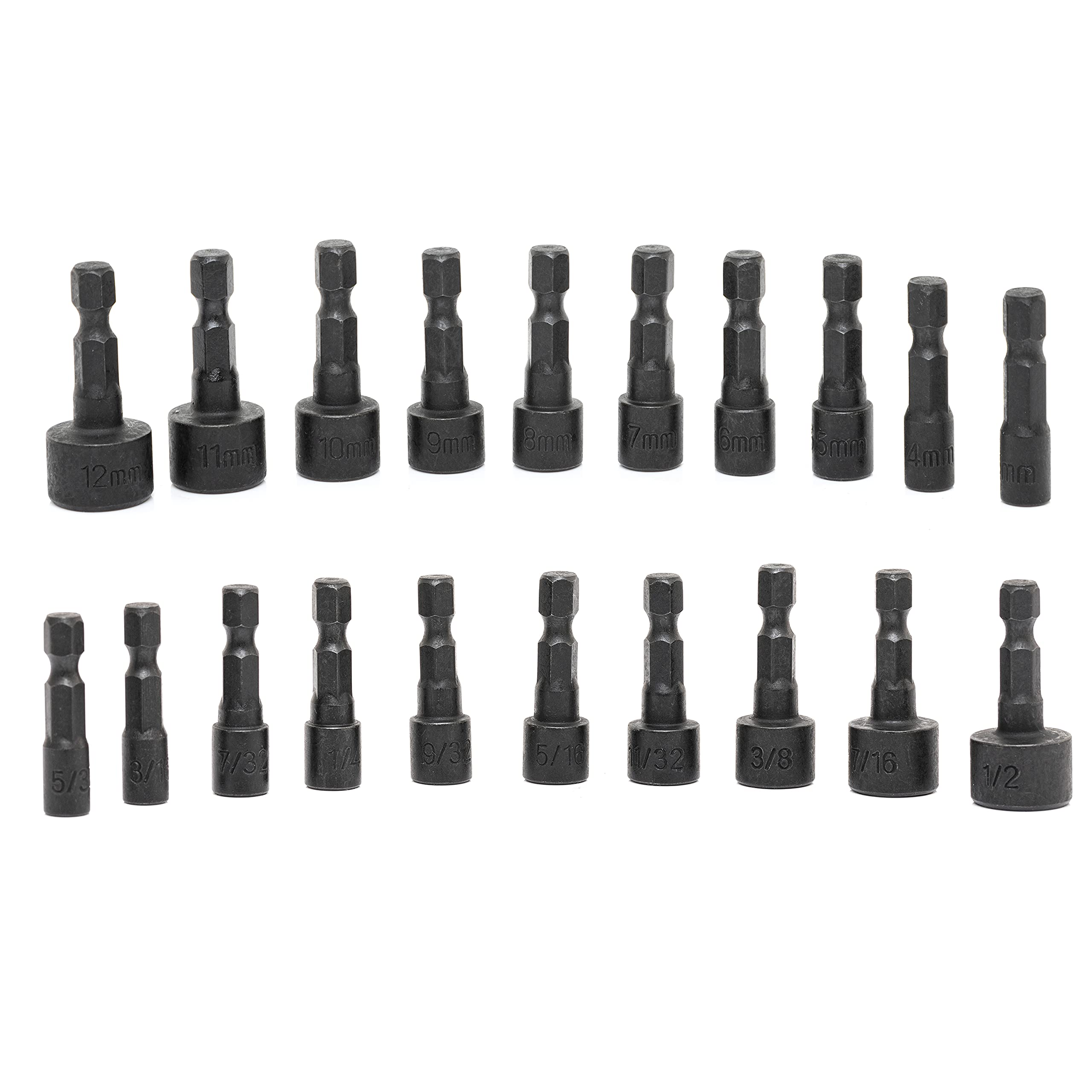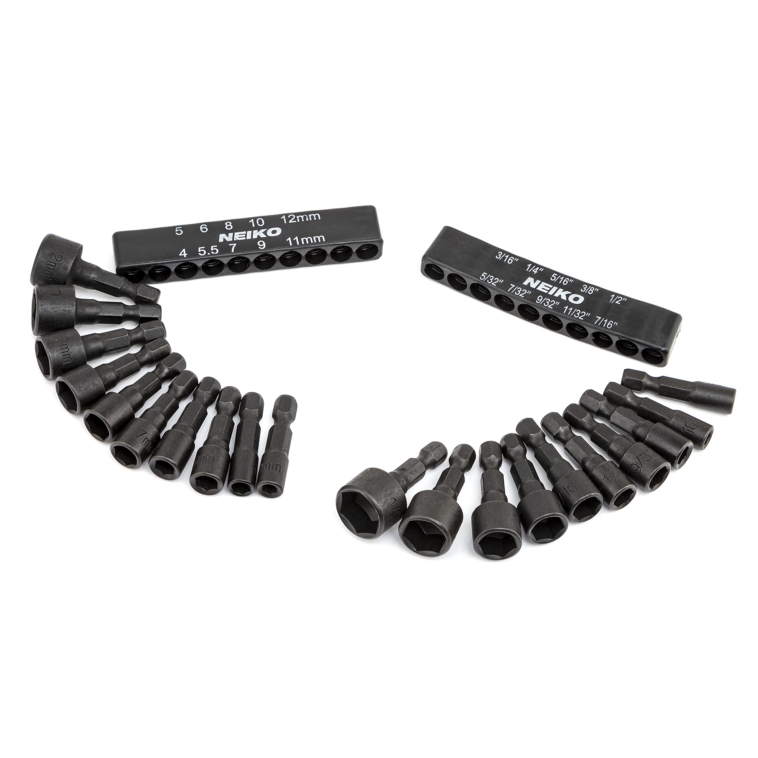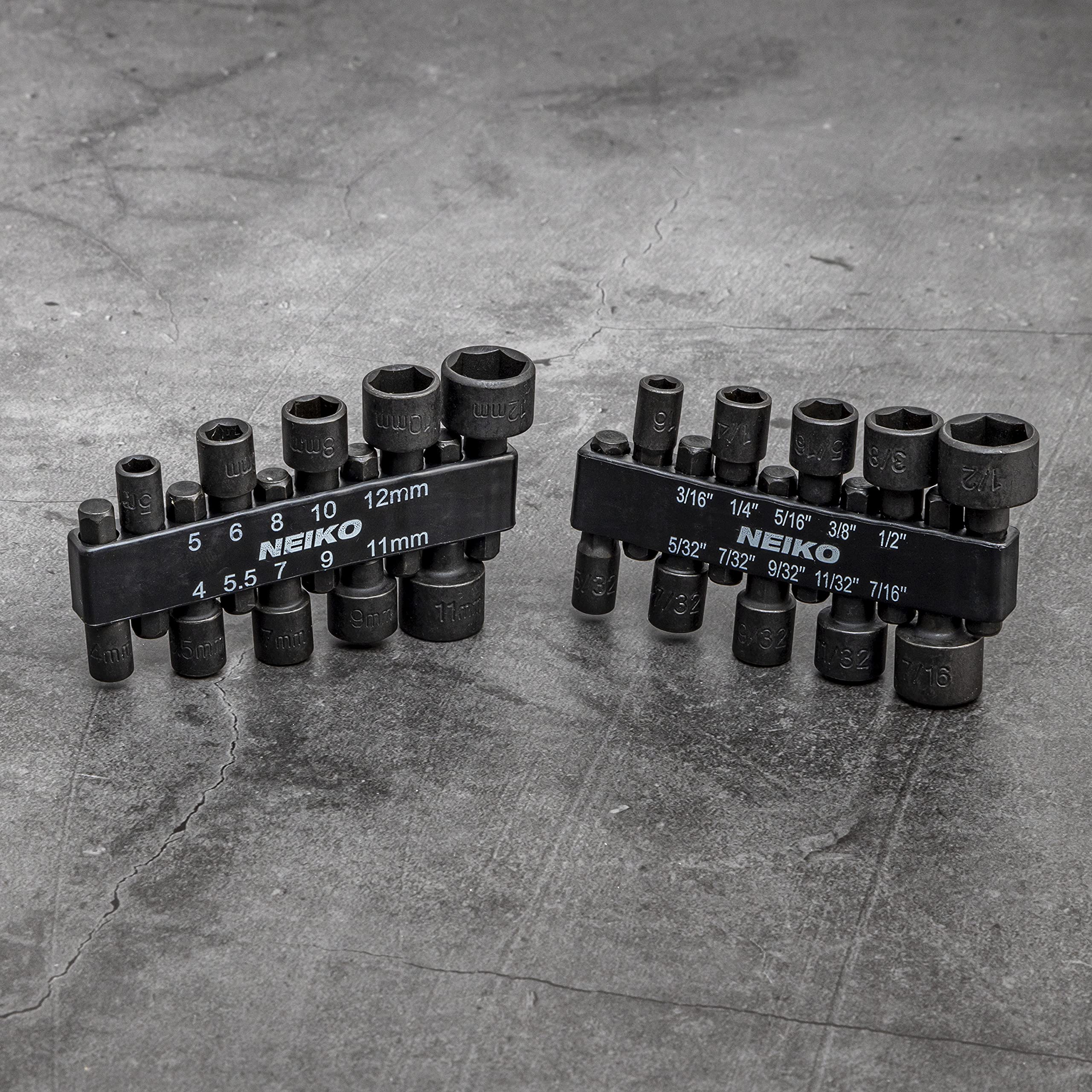 NEIKO 10068A Nut Driver Set, for Impact Drill and Driver, 20 Piece, 1/4” Hex Small Nut Driver Bit Set, Metric and Standard, 4-12 mm & 5/32”-1/2”, CR-V Steel, Nutsetter Driver Bits