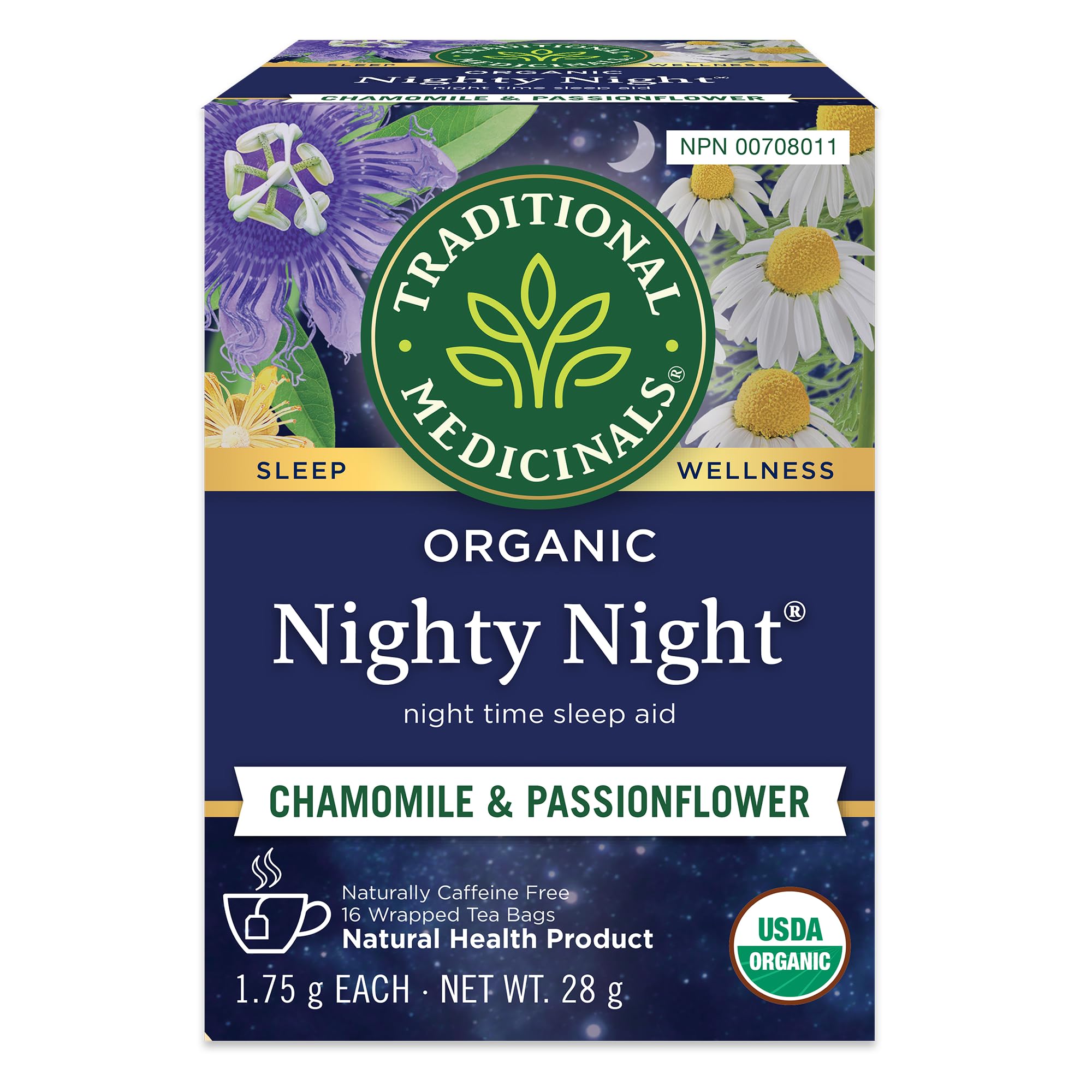 Traditional Medicinals - Organic Nighty Night Herbal Tea (Pack of 1) - Natural Sleep Aid containing Passionflower and Chamomile - 16 Tea Bags Total