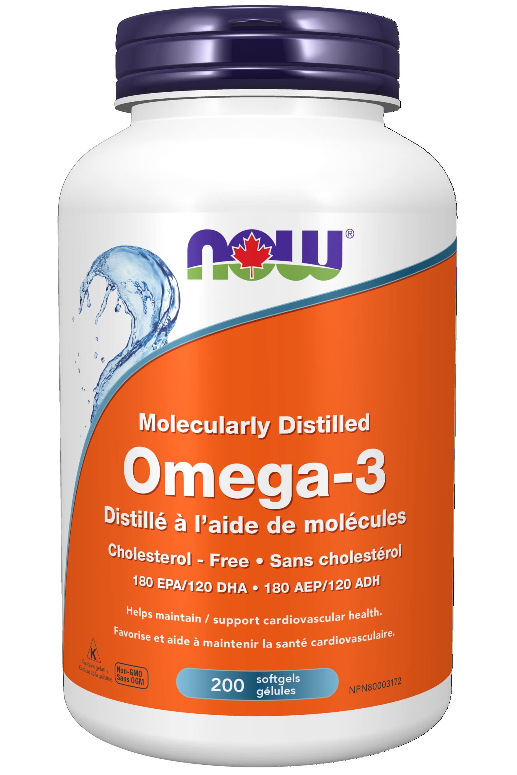 NOW Supplements, Omega-3 180 EPA / 120 DHA, Molecularly Distilled, Cardiovascular Support, 200 Softgels