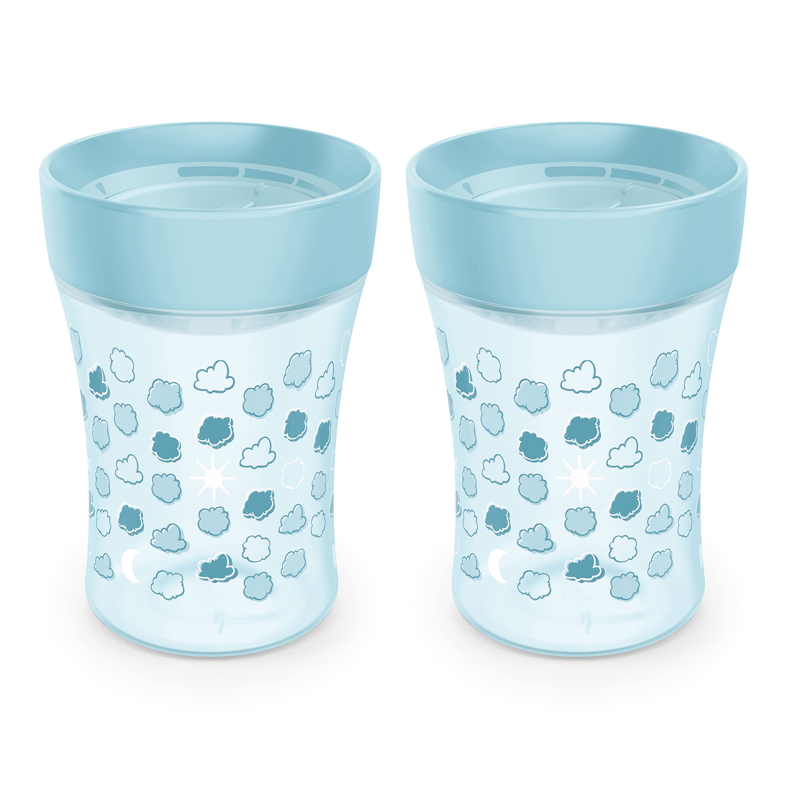 NUK Flow Control Sip Trainer Cup, 8 oz (240 mL), 9+ Months, Blue Clouds, 2 Pack