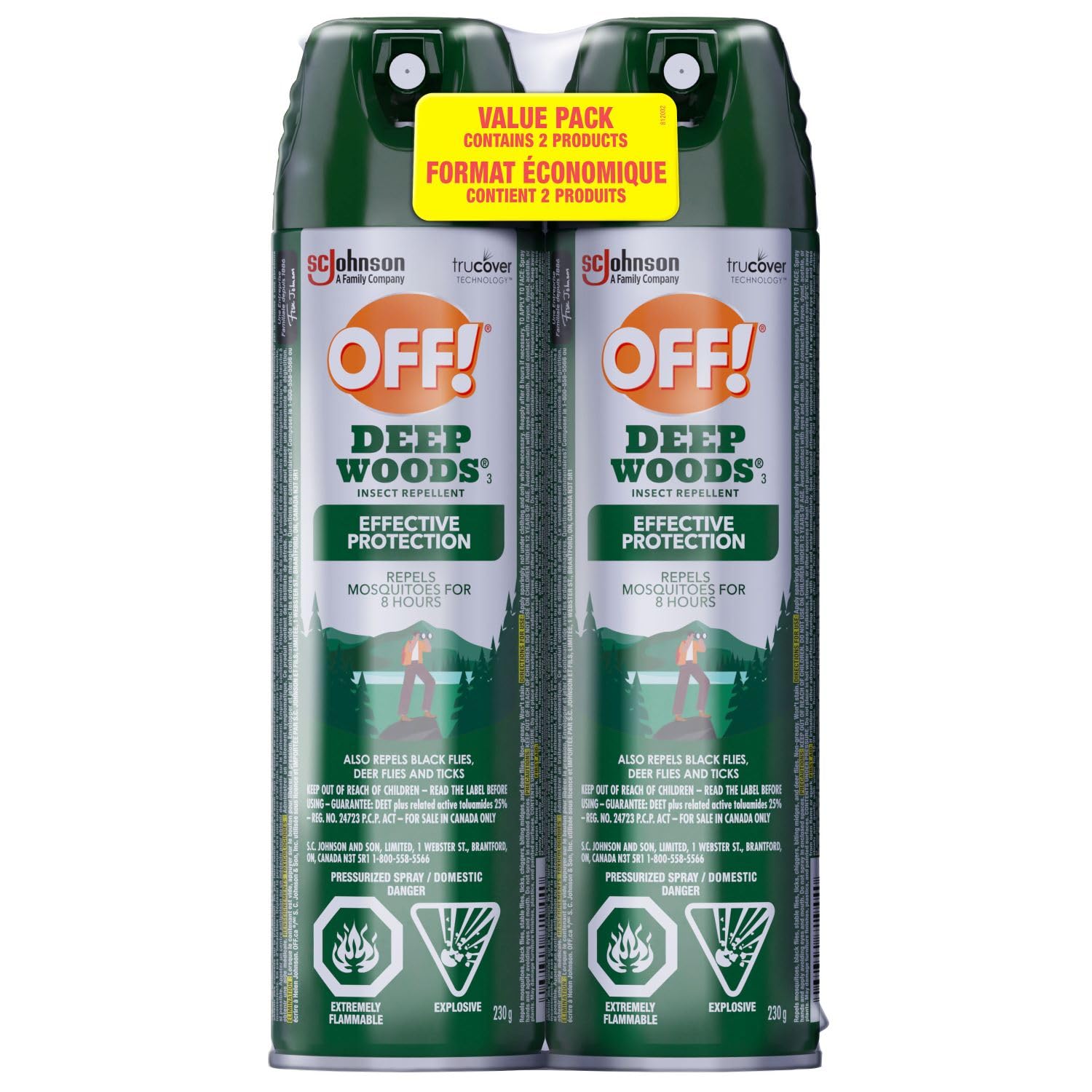OFF! Deep Woods Unscented Insect & Mosquito Repellent Aerosol, 25% DEET, Up to 8 Hours Protection, Continuous 360° Spray, 230g Each, 2-Pack