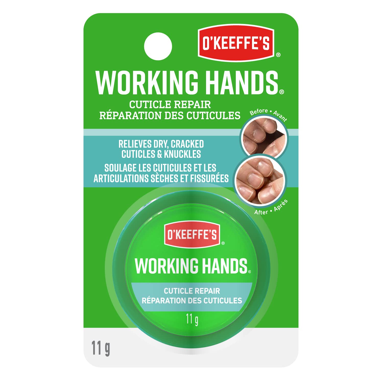 O'Keeffe's Working Hands Cuticle Repair, Instant Relief and Lasting Hydration, Nourishes and Protects, Non-Greasy Formula, 0.38oz/11g Jar, (Pack of 1), 107475