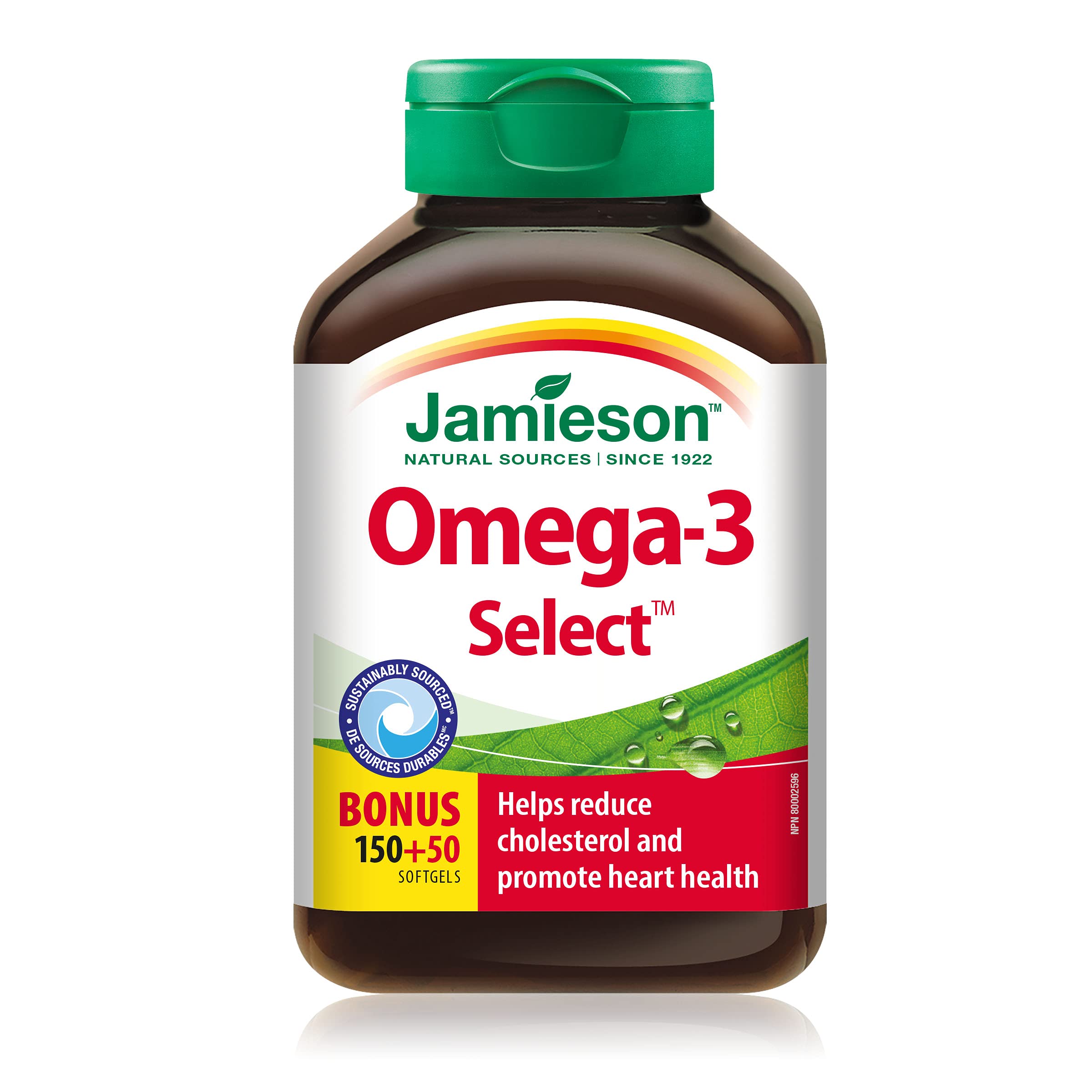 Jamieson Omega-3 Select 1,000 mg, Improves Heart Health, Supports Brain Health, and Reduces Inflammation. 200 Softgels