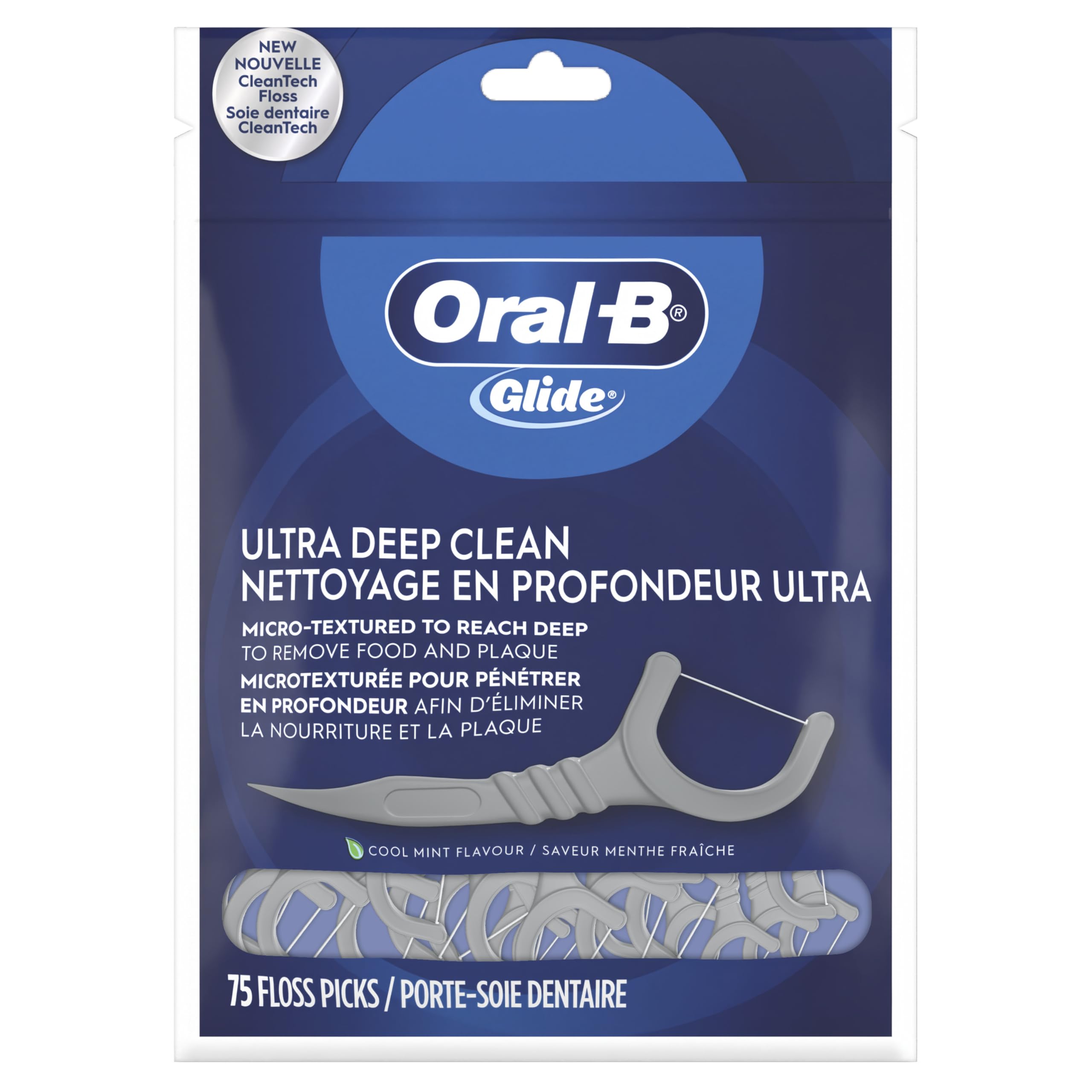 Oral-B Glide Floss Picks, Pro-Health Deep Clean, Clean Mint Flavor Dental Floss, 75 Count