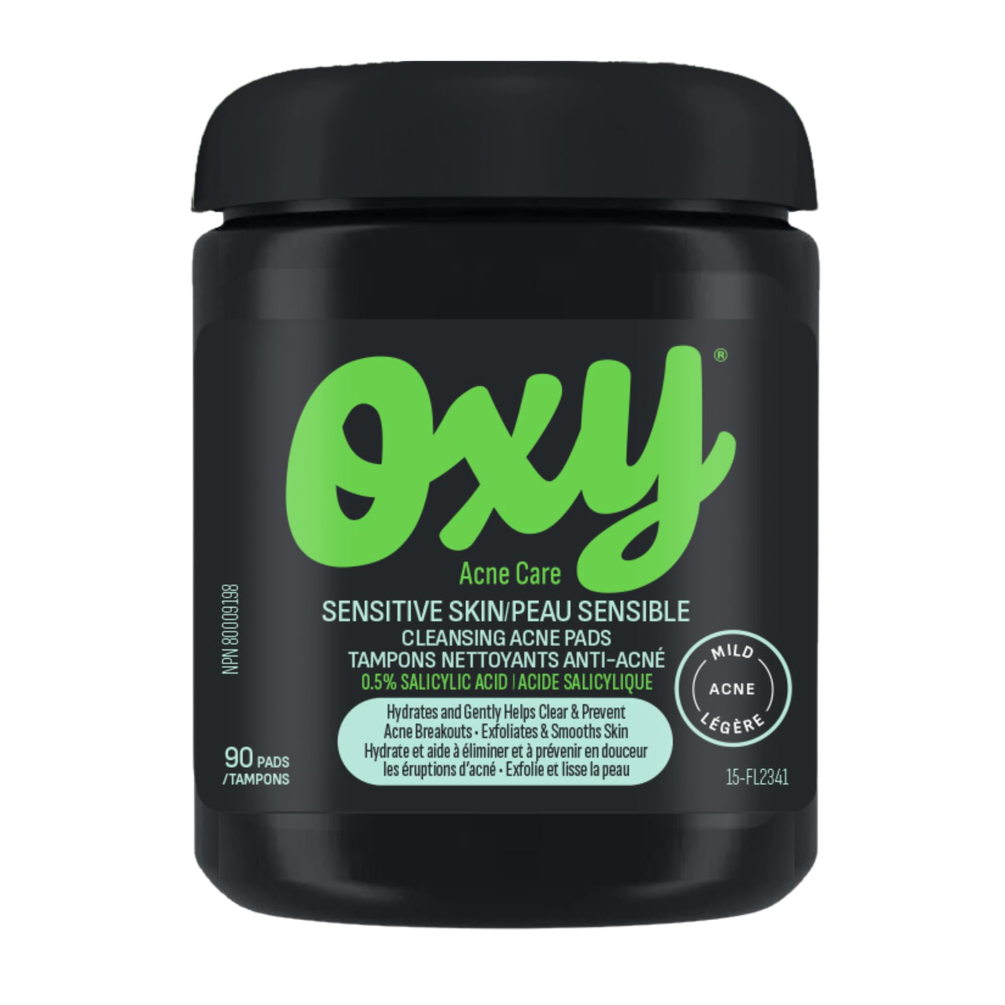 Oxy Sensitive Skin Cleansing Acne Pads - Clinically Proven Salicylic Acid (0.5%) – Gentle Formula to Help Treat and Prevent Breakouts - Enhanced Moisturizers - Unscented - Dermatologist Tested