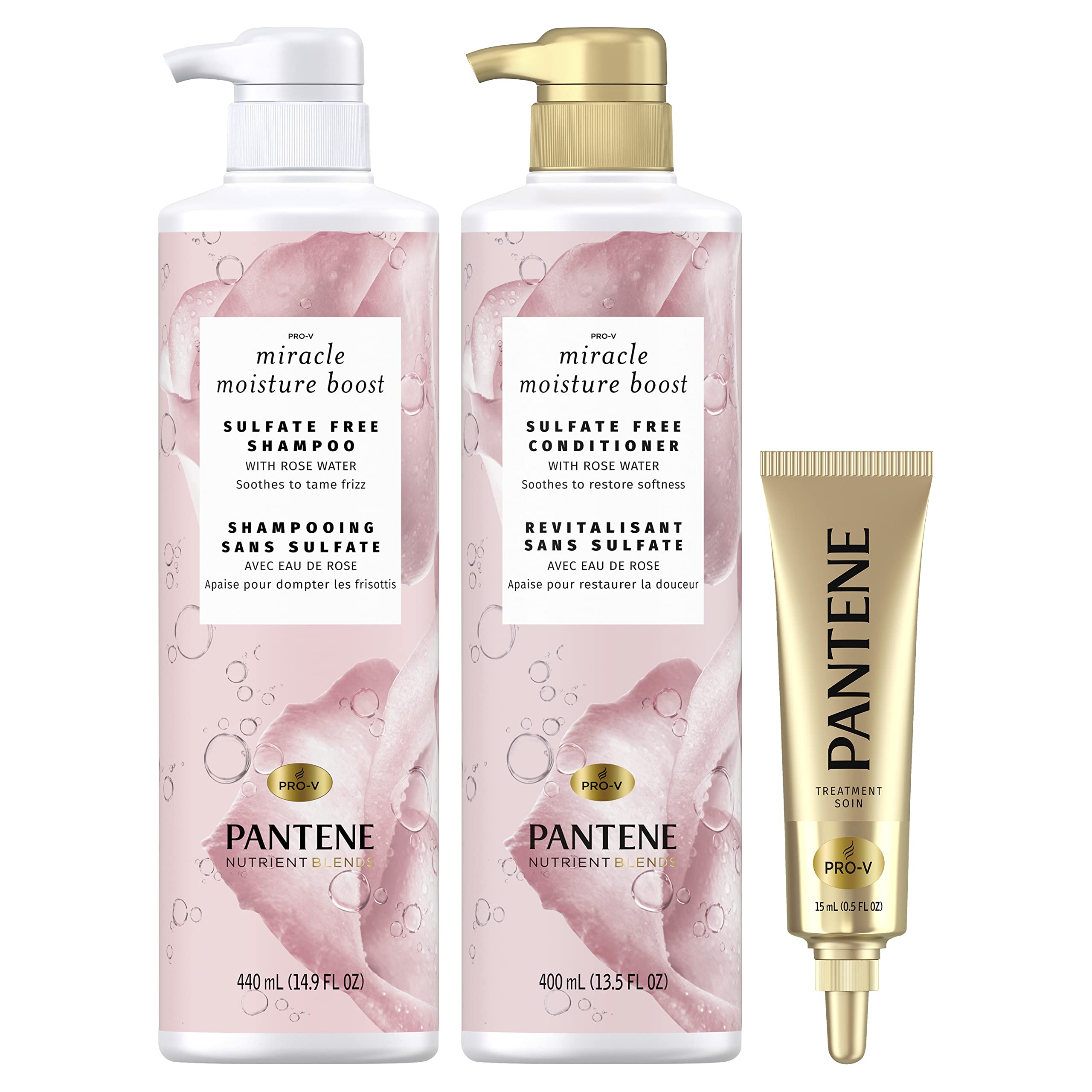 Pantene Sulfate Free Shampoo And Conditioner Set With Rose Water And Hair Treatment, Nutrient Blends Miracle Moisture Boost (855 mL Total)