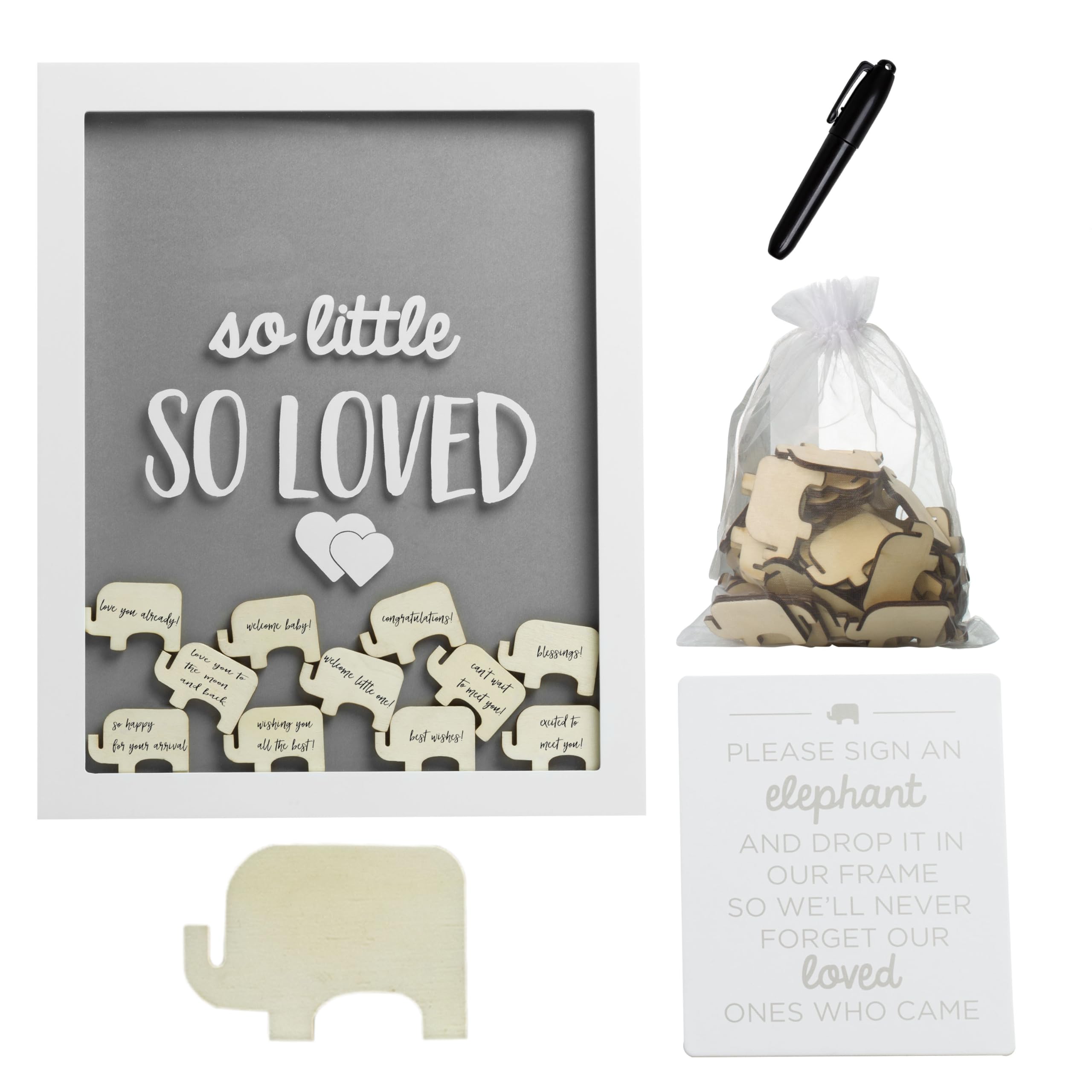 Pearhead Elephant Token Frame, Little Wishes Signature Baby Shower Guestbook Alternative, Pregnancy Keepsake for Soon to be Moms, Gray and White, 12" W x 15" H