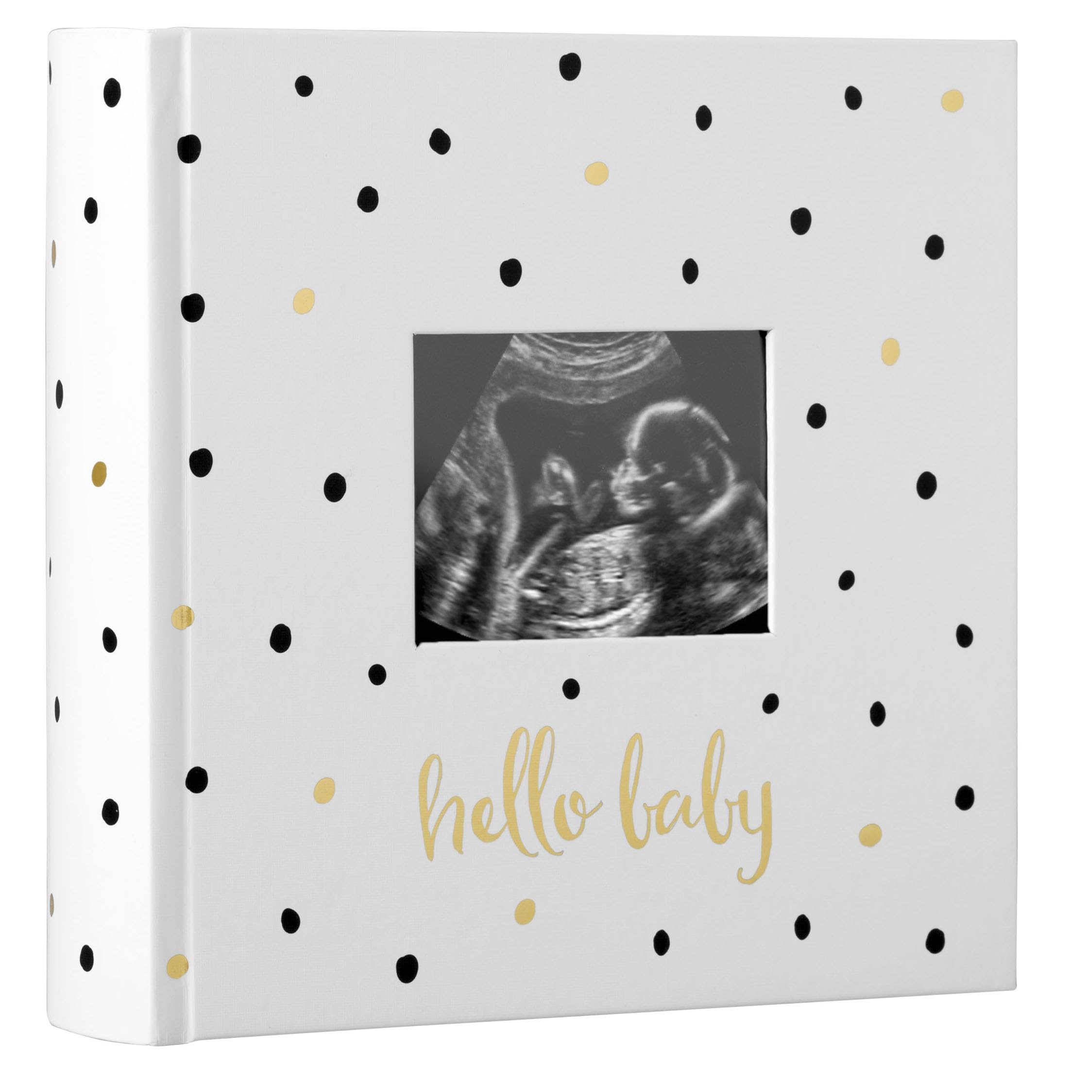 Pearhead Pearhead 'Hello Baby' Baby Photo Album, White/Black and Gold Polka Dot