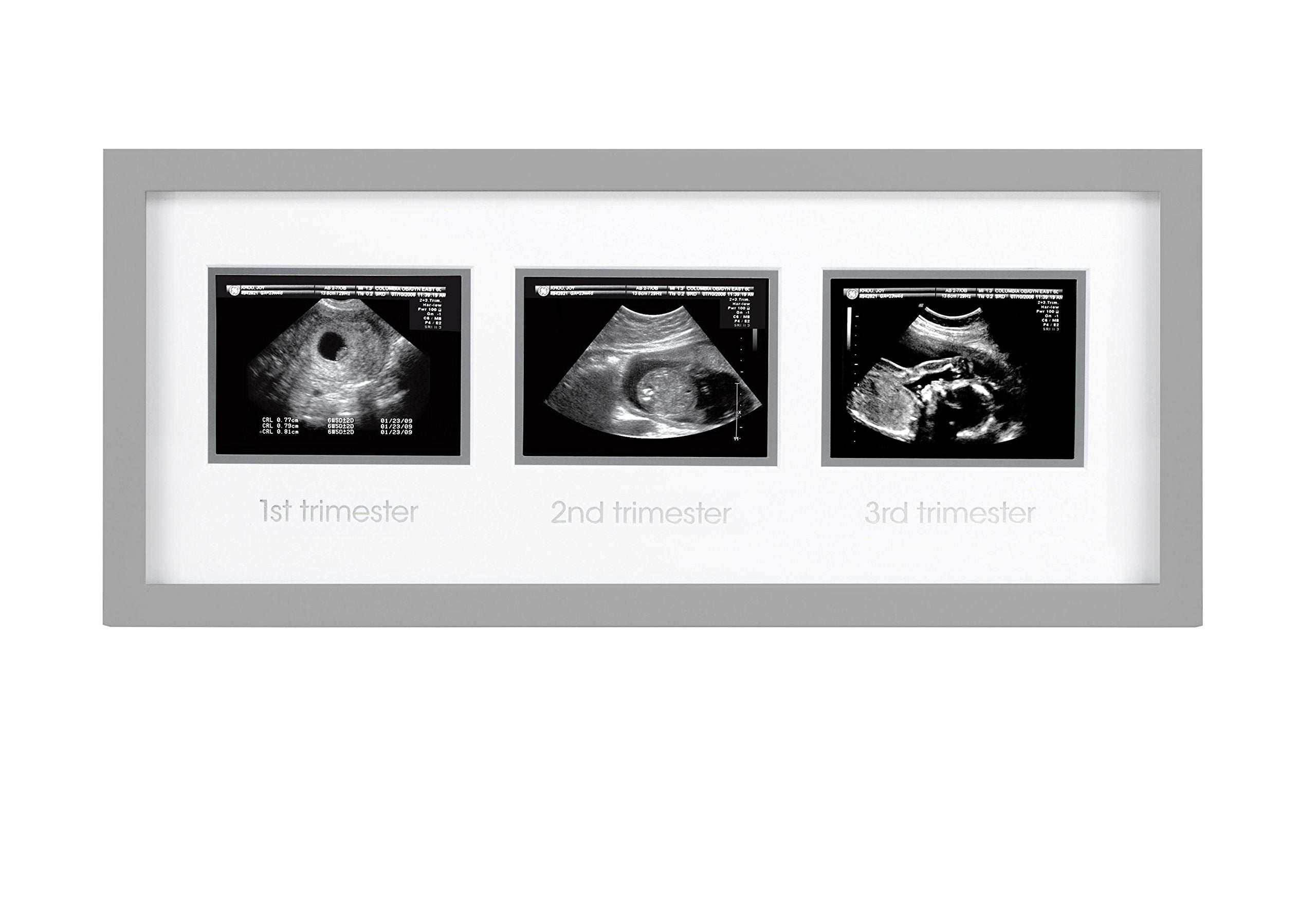 Pearhead Triple Sonogram Pregnancy Keepsake Frame, Watch Baby Grow Through all Three Trimesters - Great Gift For Expecting Parents, Grey