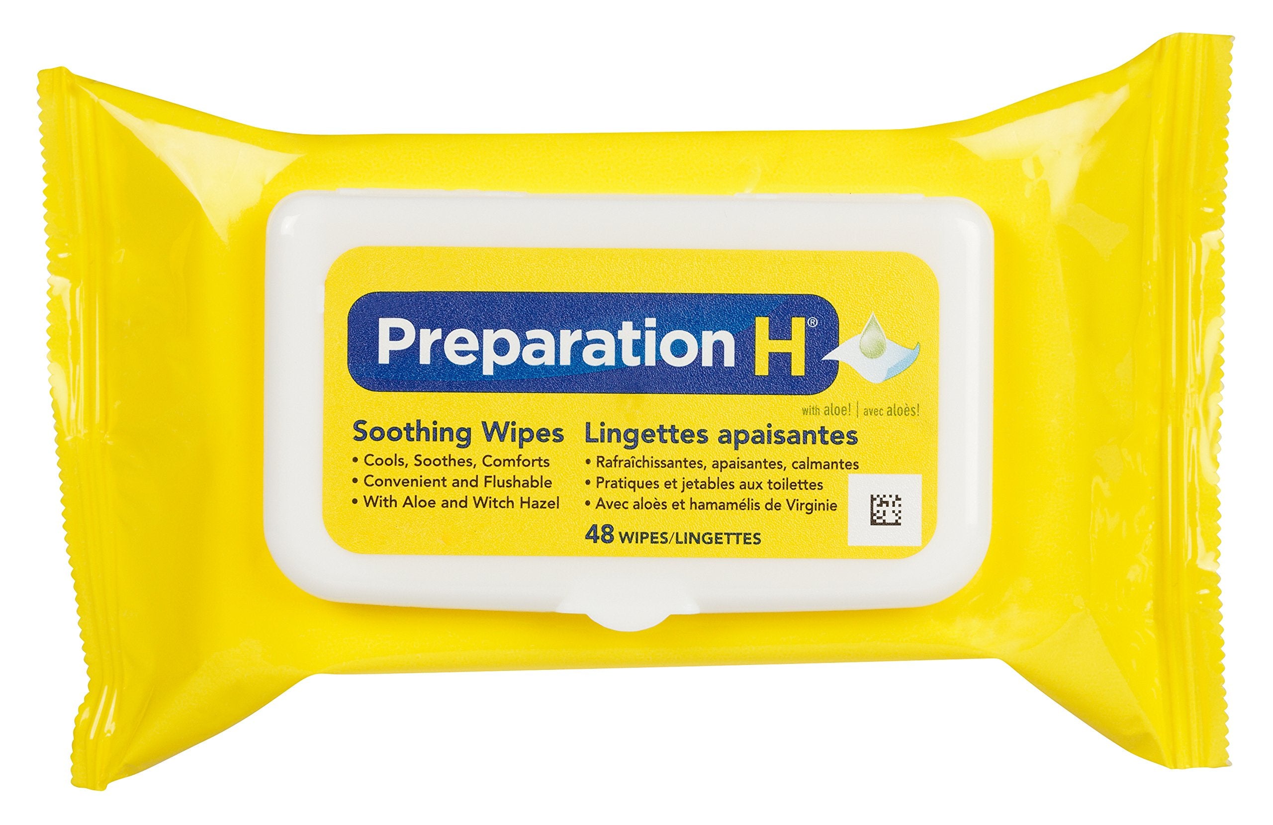 Preparation H Soothing Wipes for Hemorrhoid Cleansing with Aloe and Witch Hazel, Flushable, 48-Count