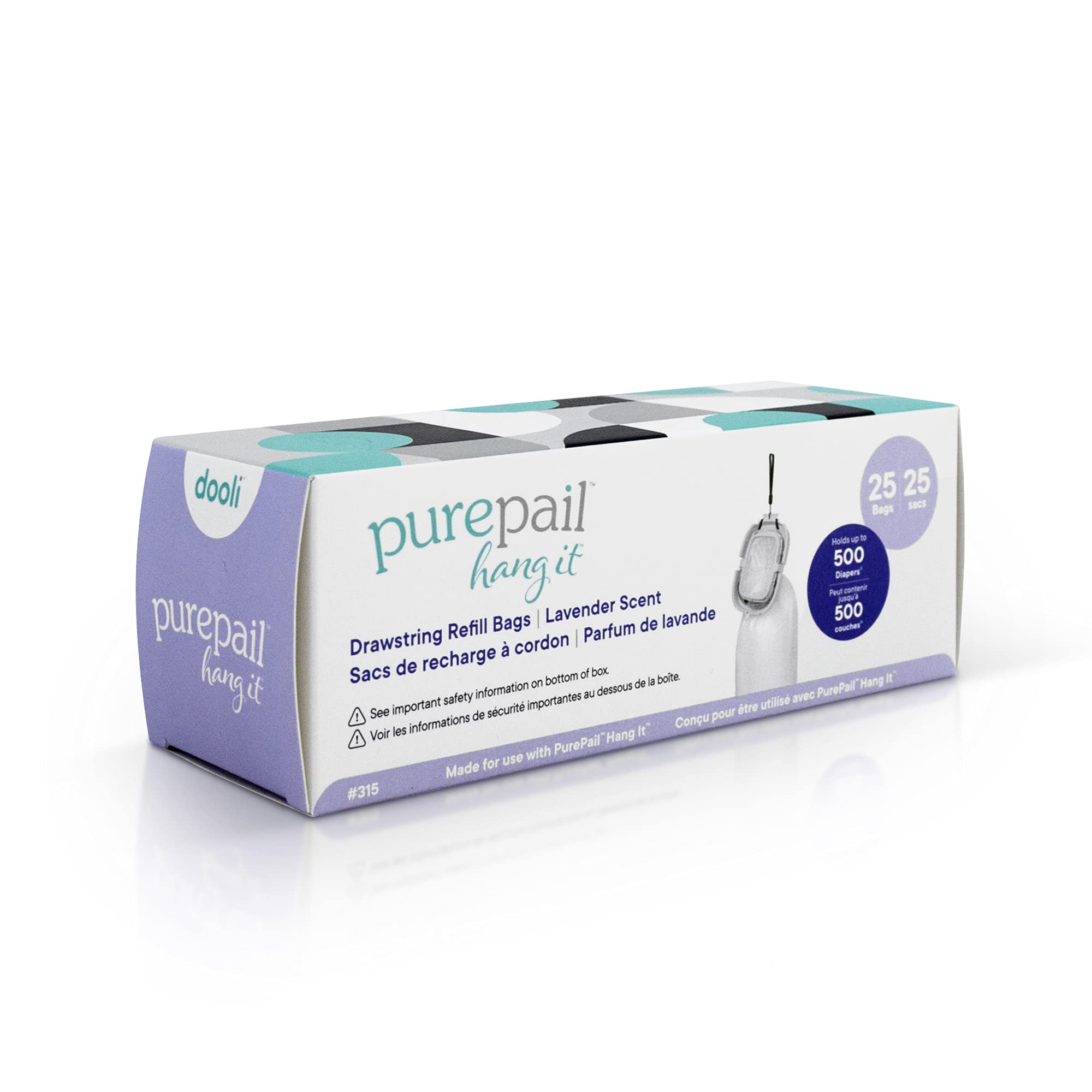 PurePail Hang It Odor-Trapping Diaper Disposal Bags — 25 Bags — Lavender Scent — Holds up to 500 Newborn Diapers — Traps and Neutralizes Odors with a Light Lavender Scent — Fits PurePail Hang It