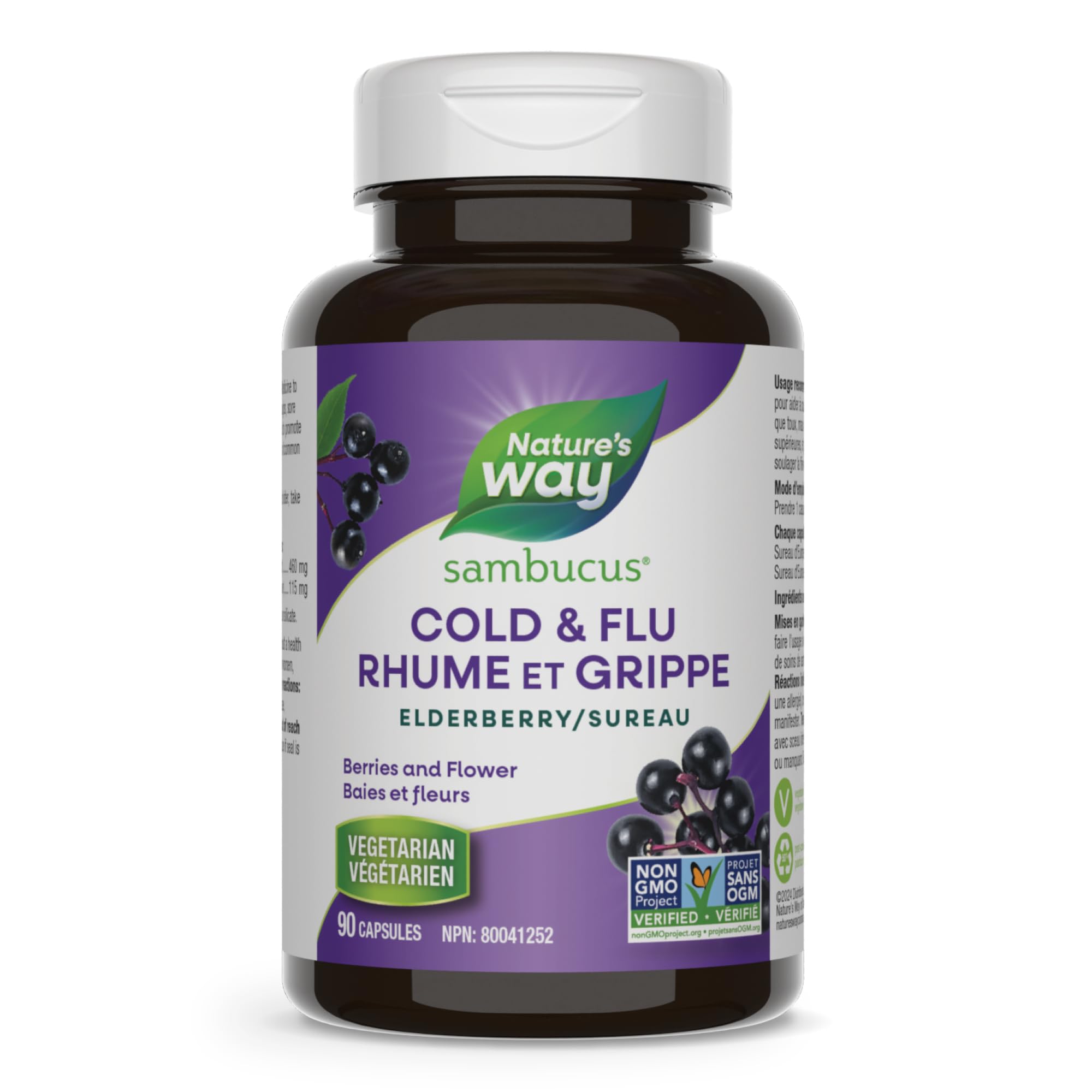 Sambucus Elderberry Cold and Flu Care Capsules, 90 Vegetarian Capsules, Non-GMO Project Verified