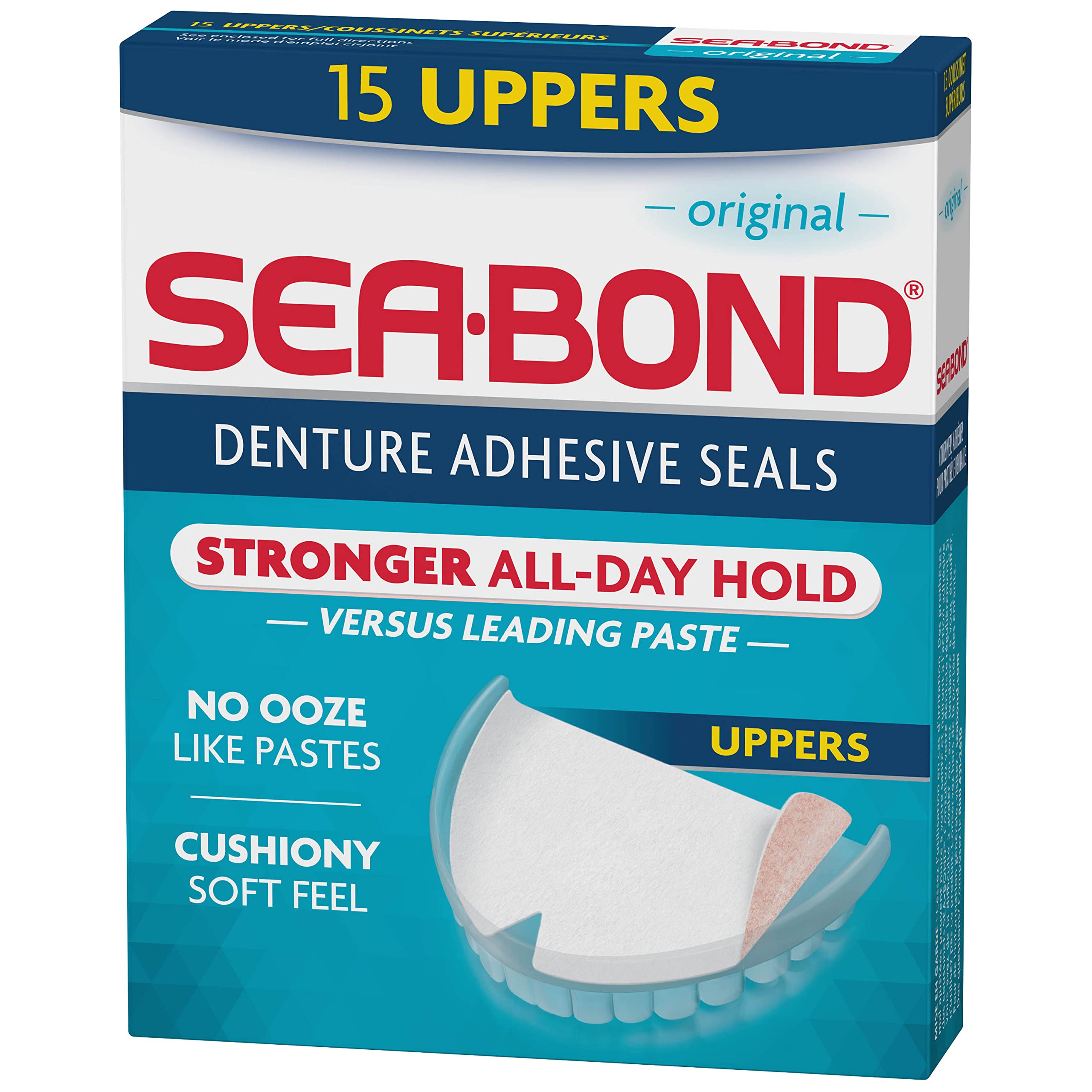 Sea Bond Secure Denture Adhesive Seals, Original Uppers, Zinc-Free, All-Day Hold, Mess-Free, 15 Count