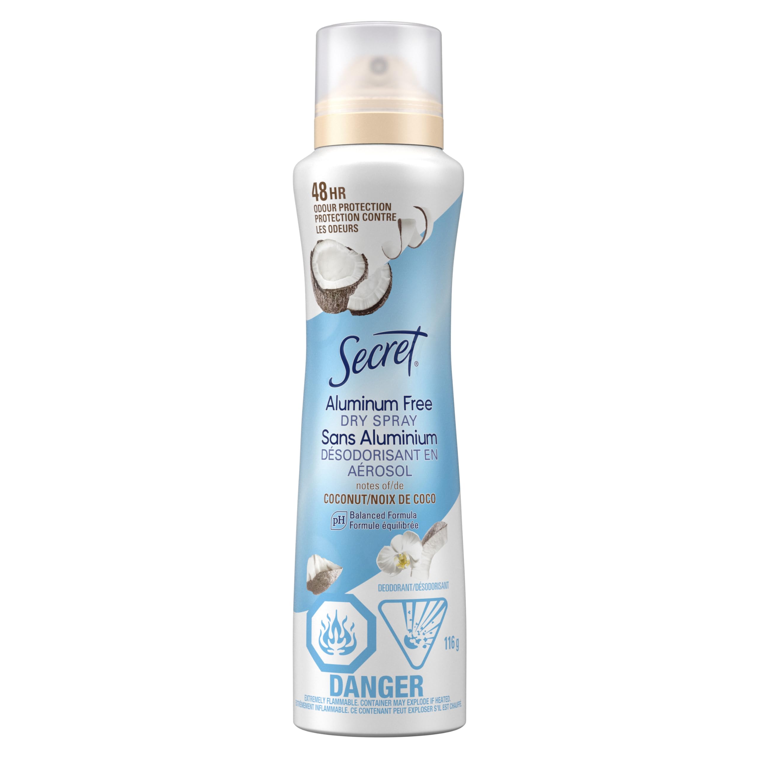 Secret Dry Spray Aluminum Free Deodorant, Coconut and Hemp Seed Oil, 116g