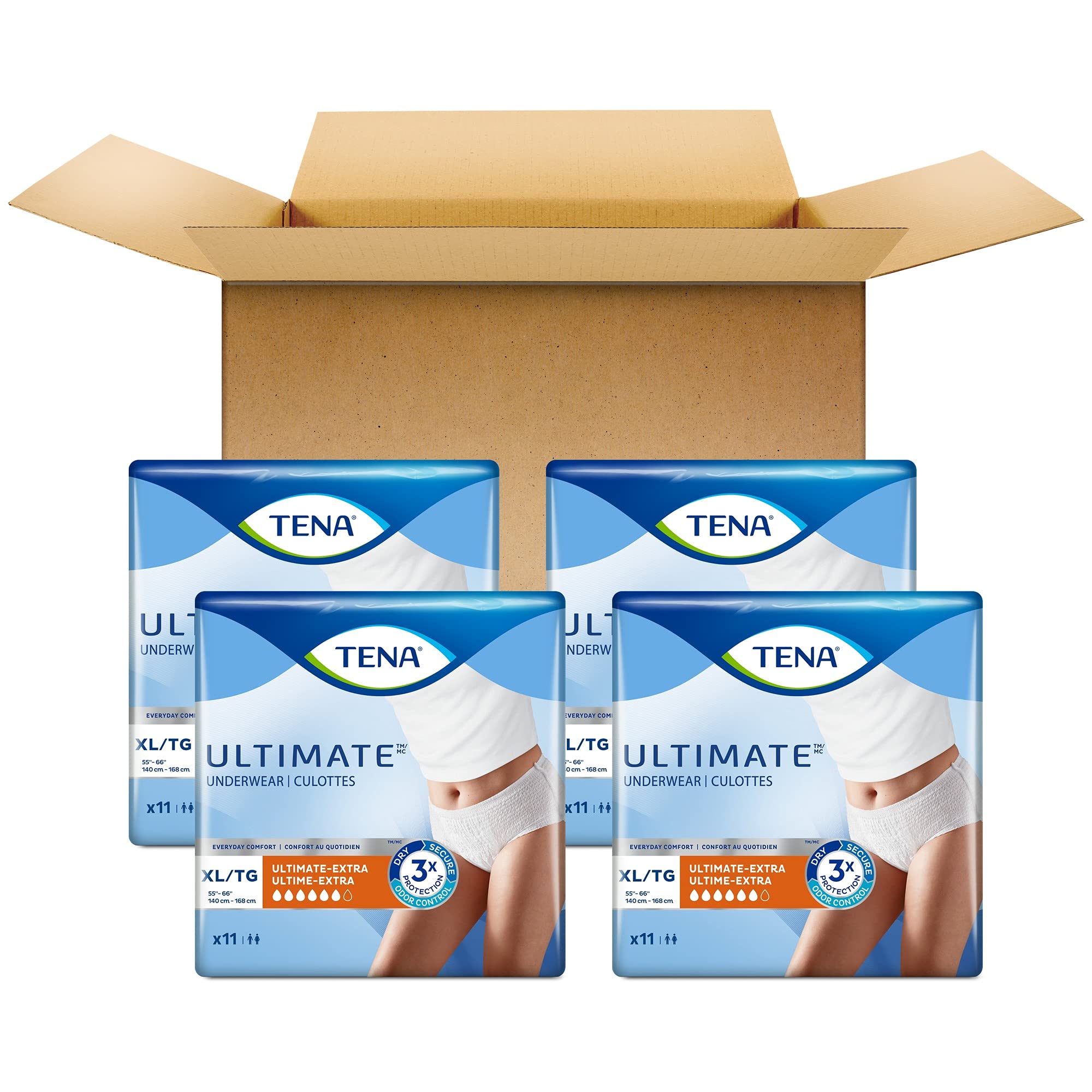 TENA Protective Incontinence Underwear, Ultimate Absorbency, Extra Large, 11 count (Pack of 4)